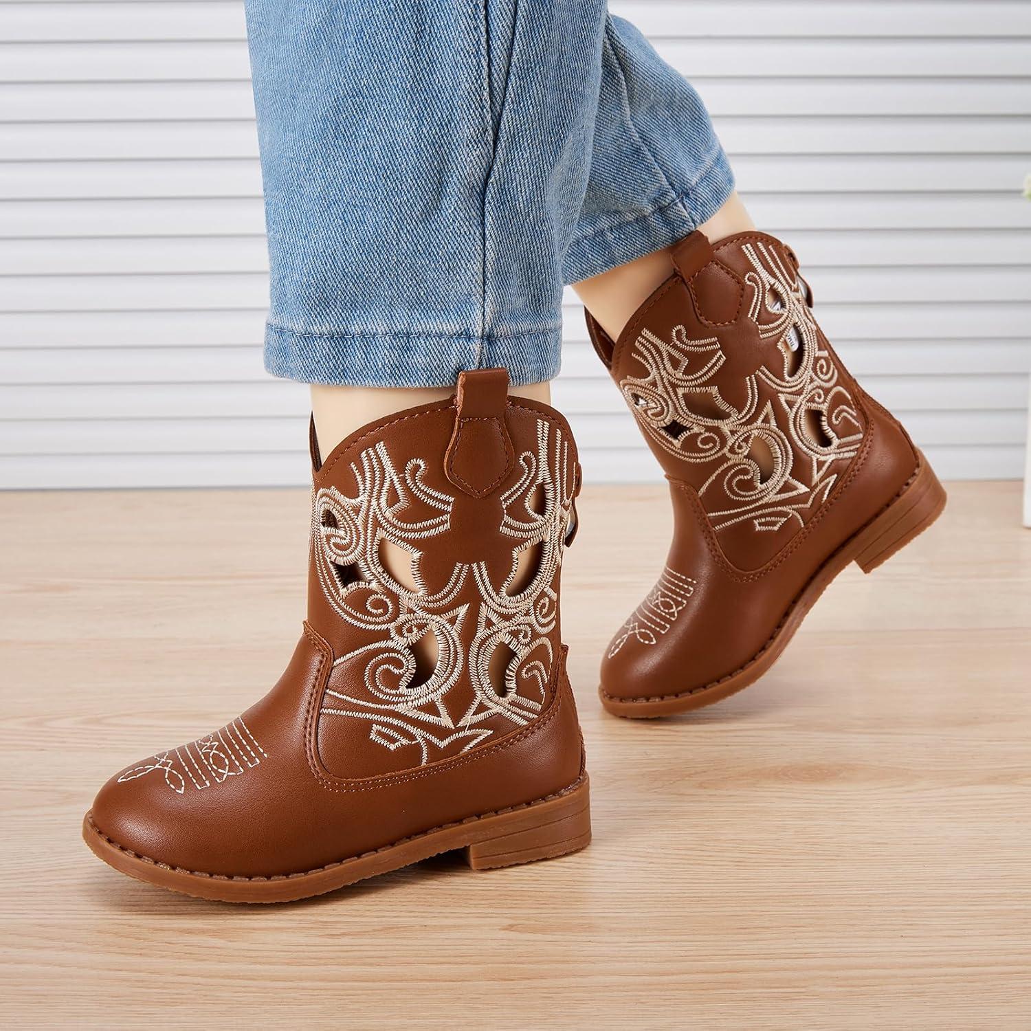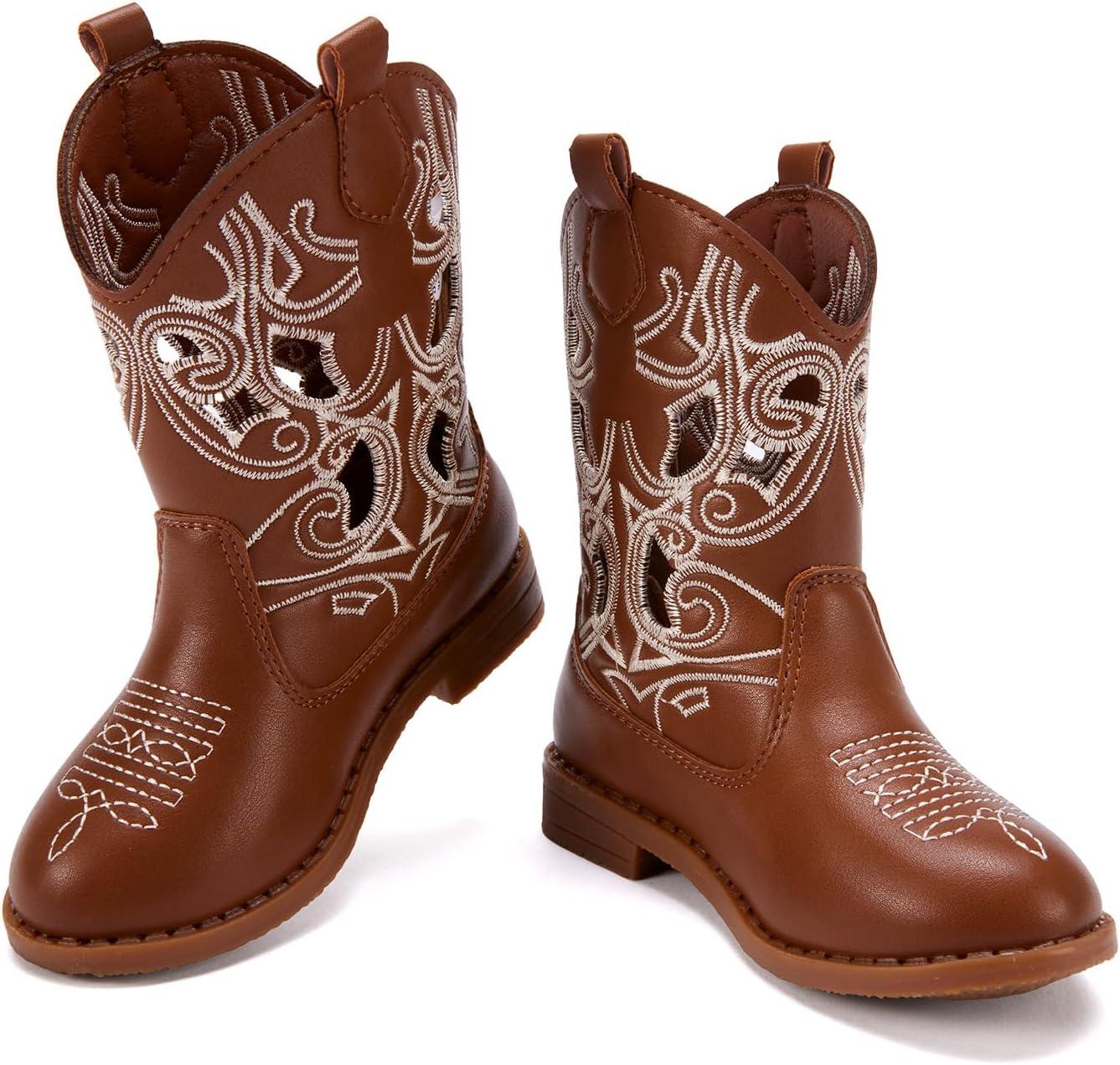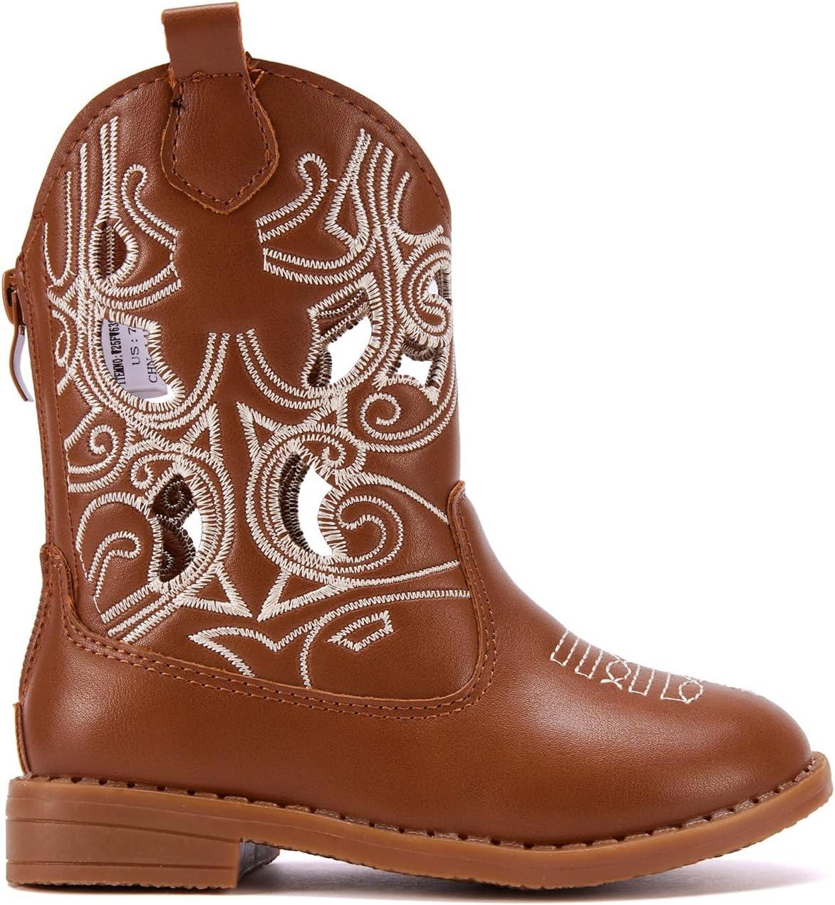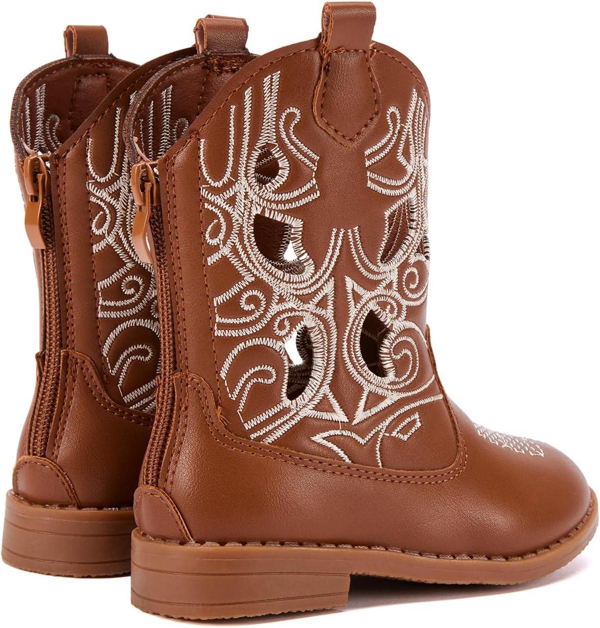 BMCiTYBM Toddler Girls Cowboy Cowgirl Boots Little Kids Pointed Toe Western Boots Mid Calf Side Zipper Riding Shoes for All Seasons (Toddler/Little Kid)(B-brown)