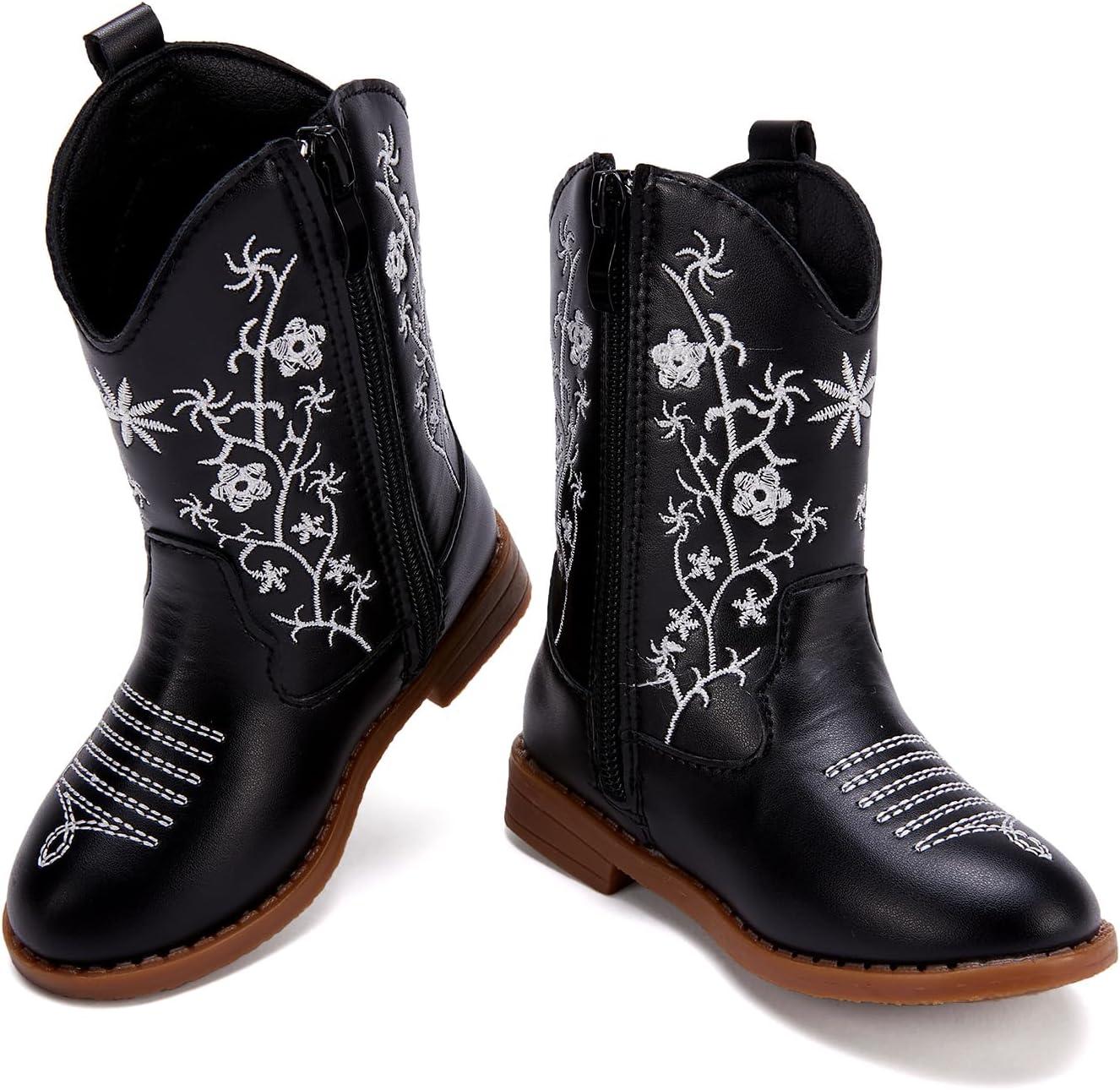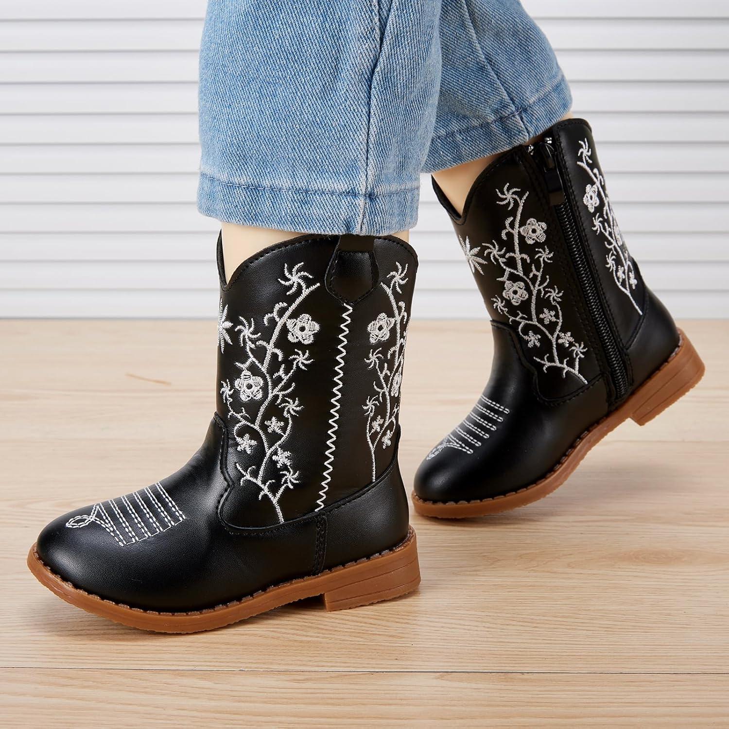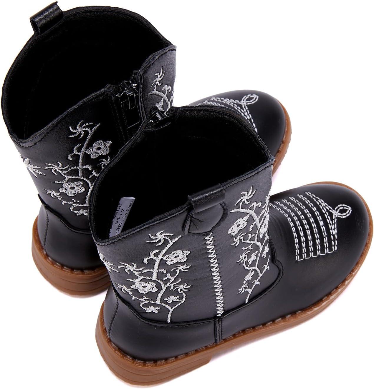 BMCiTYBM Toddler Girls Cowboy Cowgirl Boots Little Kids Pointed Toe Western Boots Mid Calf Side Zipper Riding Shoes for All Seasons (Toddler/Little Kid)(C-black)