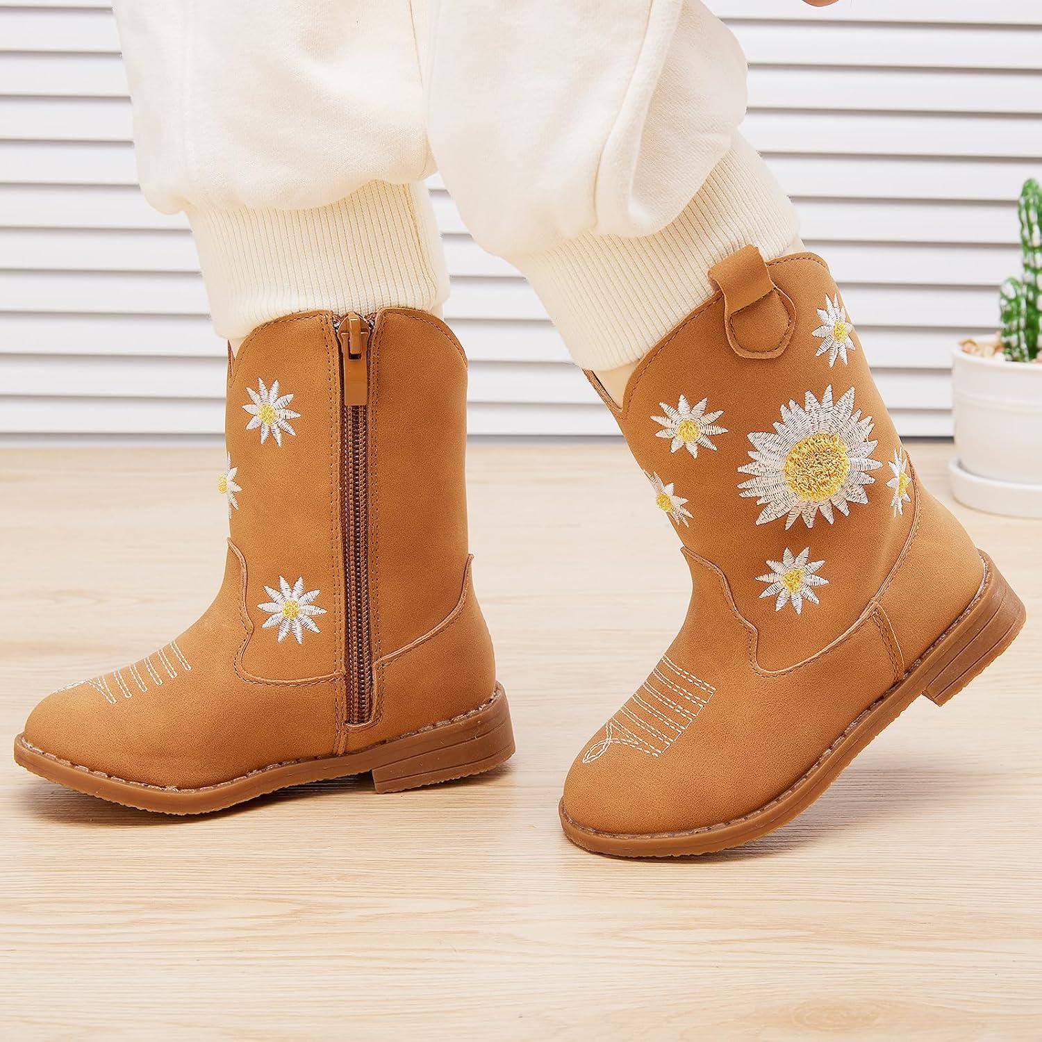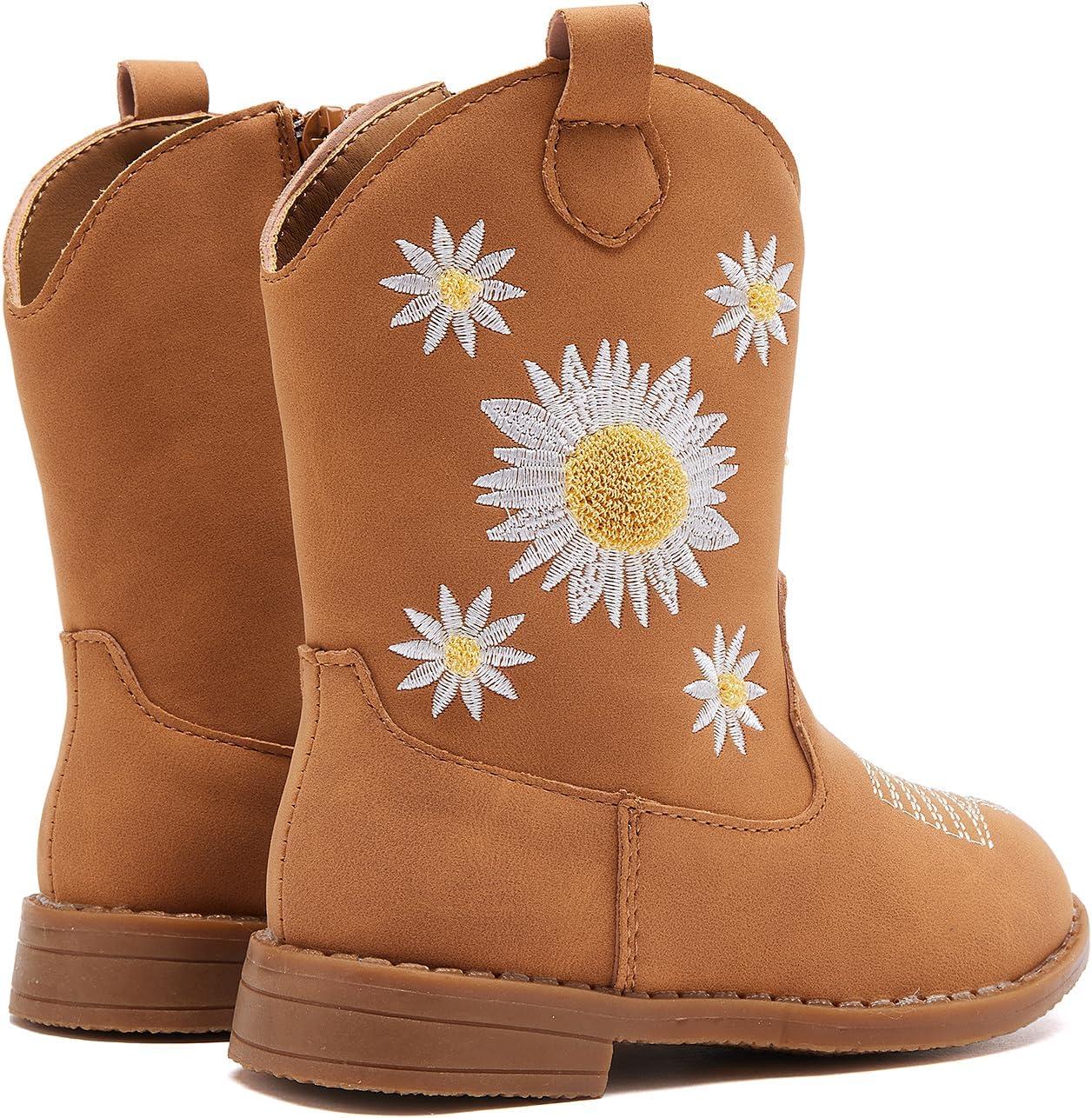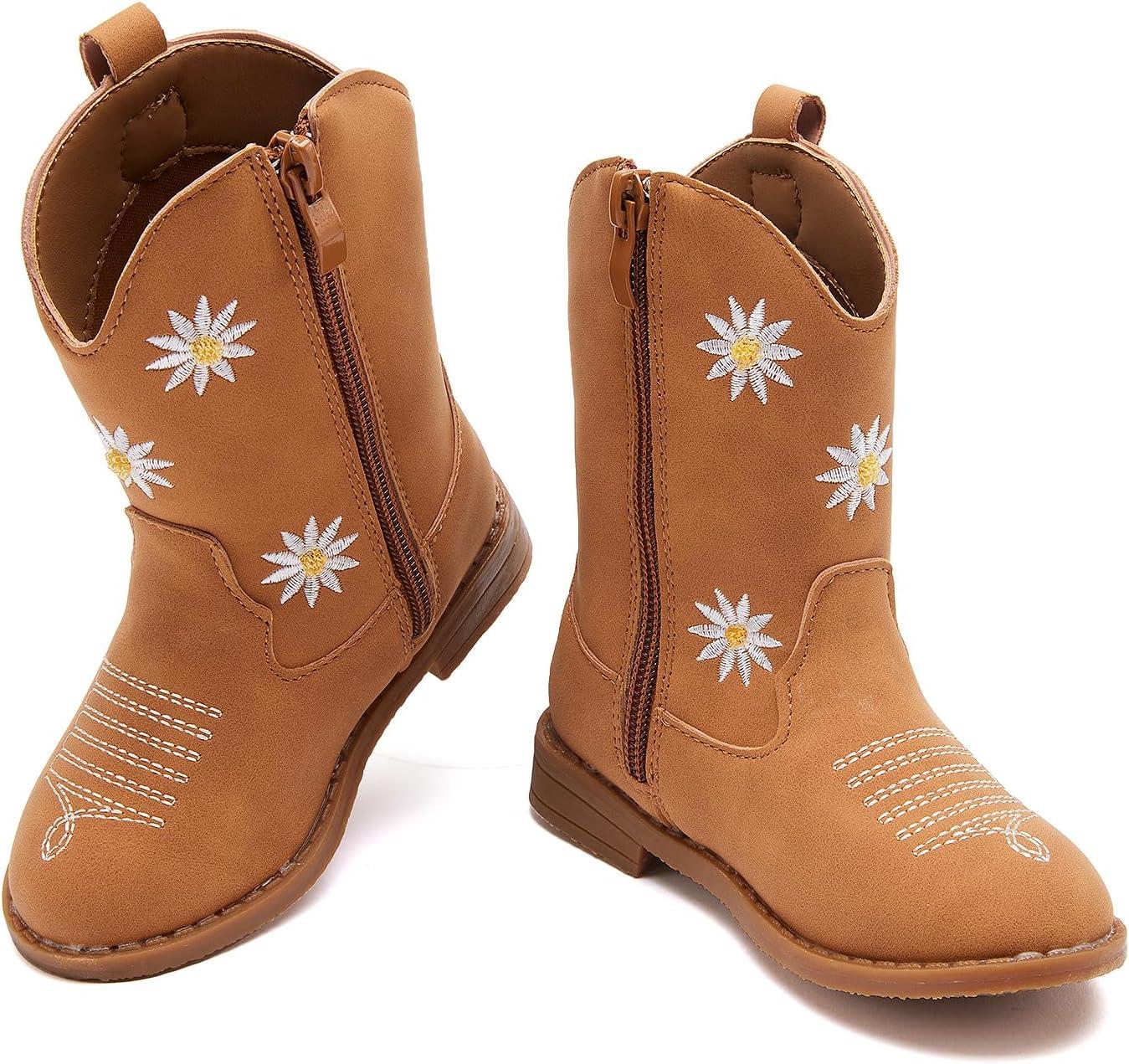 BMCiTYBM Toddler Girls Cowboy Cowgirl Boots Little Kids Pointed Toe Western Boots Mid Calf Side Zipper Riding Shoes for All Seasons (Toddler/Little Kid)(D-camel)