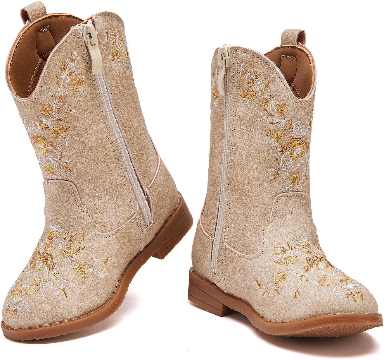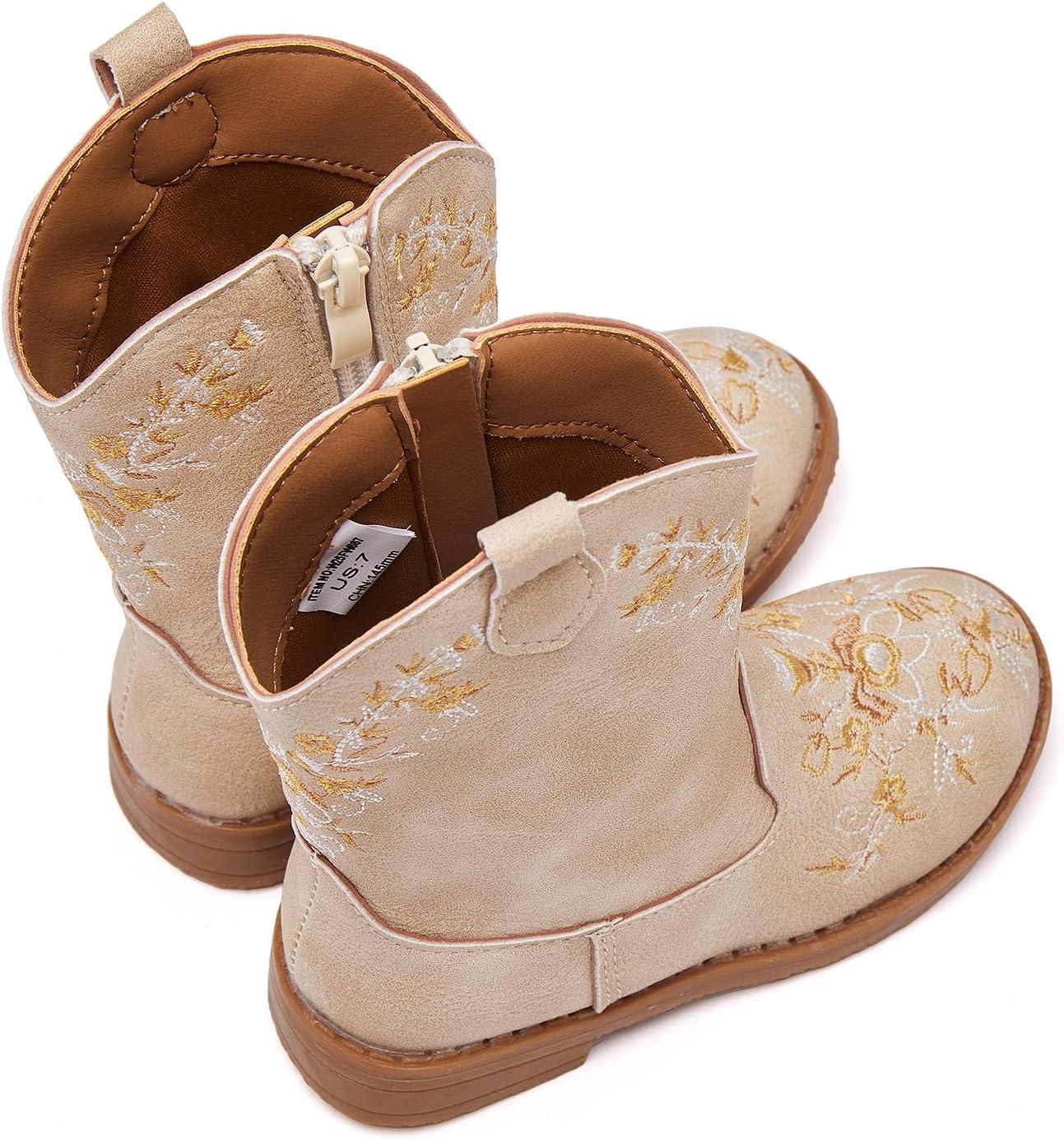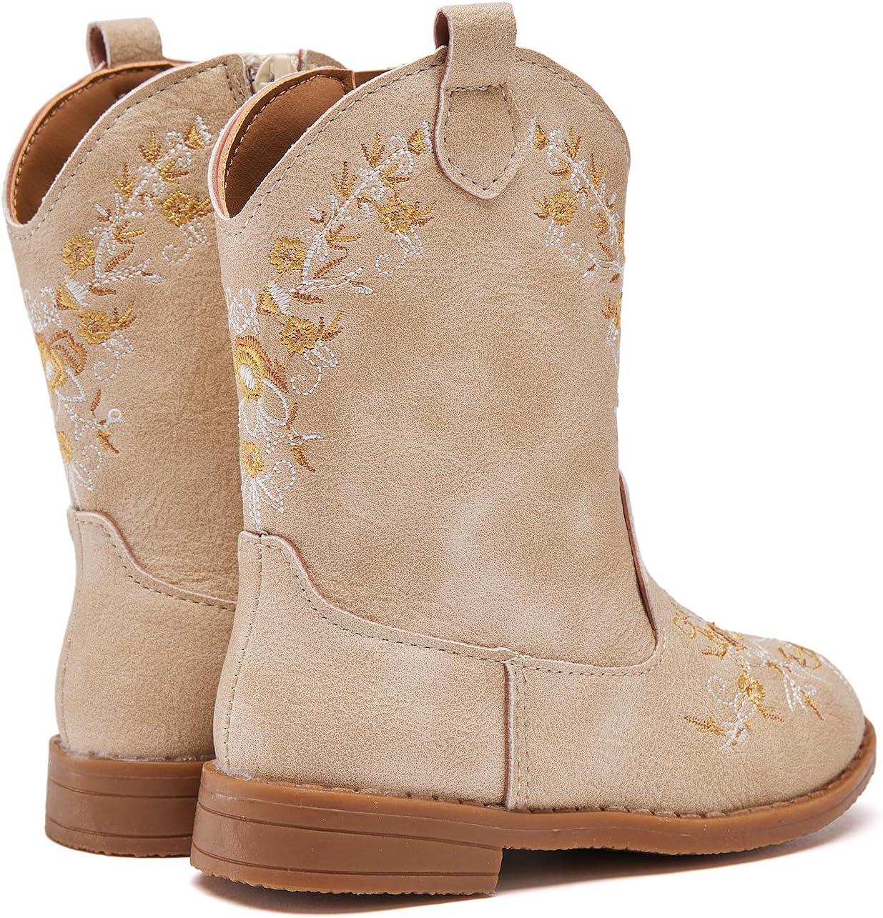 BMCiTYBM Toddler Girls Cowboy Cowgirl Boots Little Kids Pointed Toe Western Boots Mid Calf Side Zipper Riding Shoes for All Seasons (Toddler/Little Kid)(F-beige)