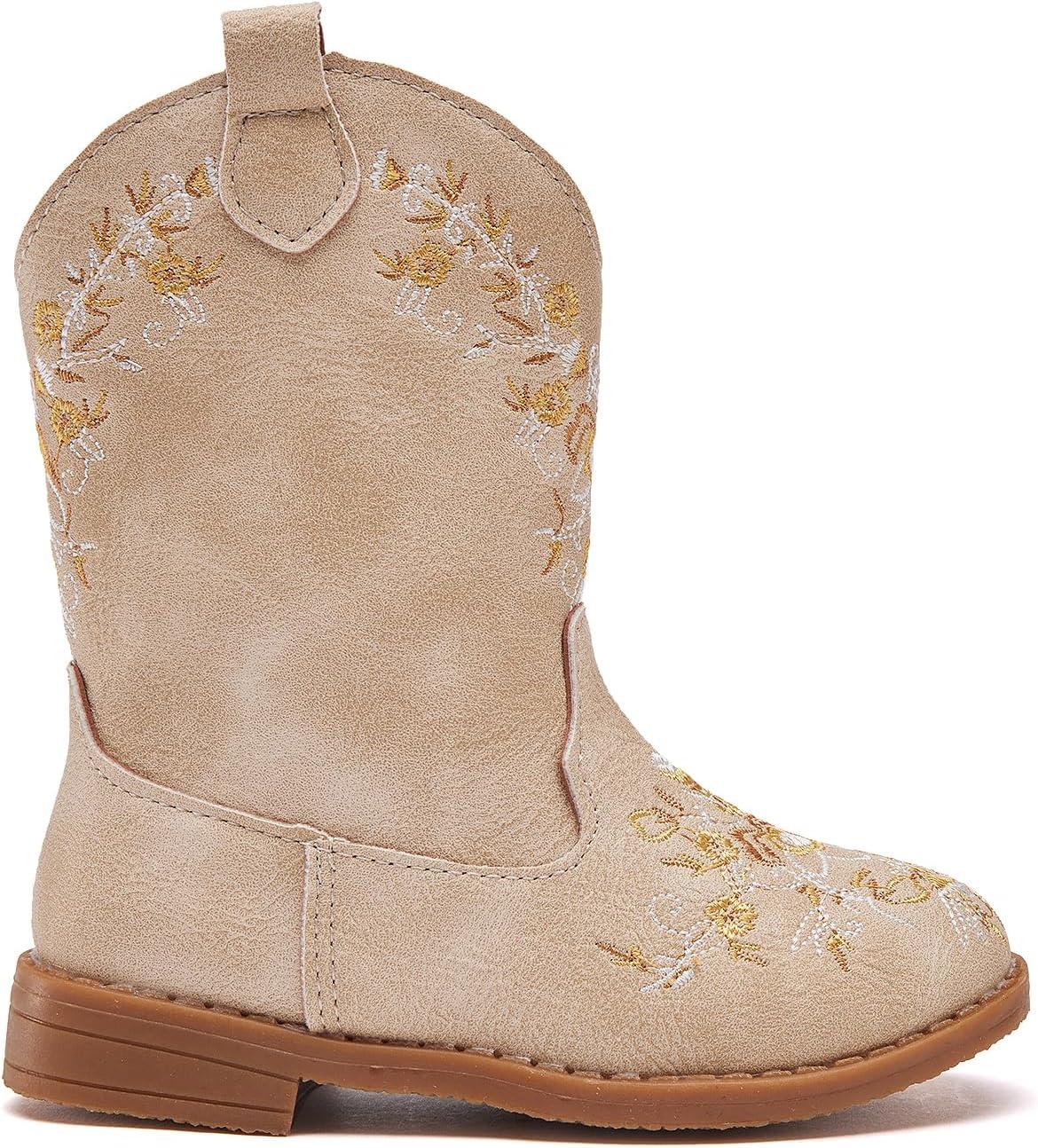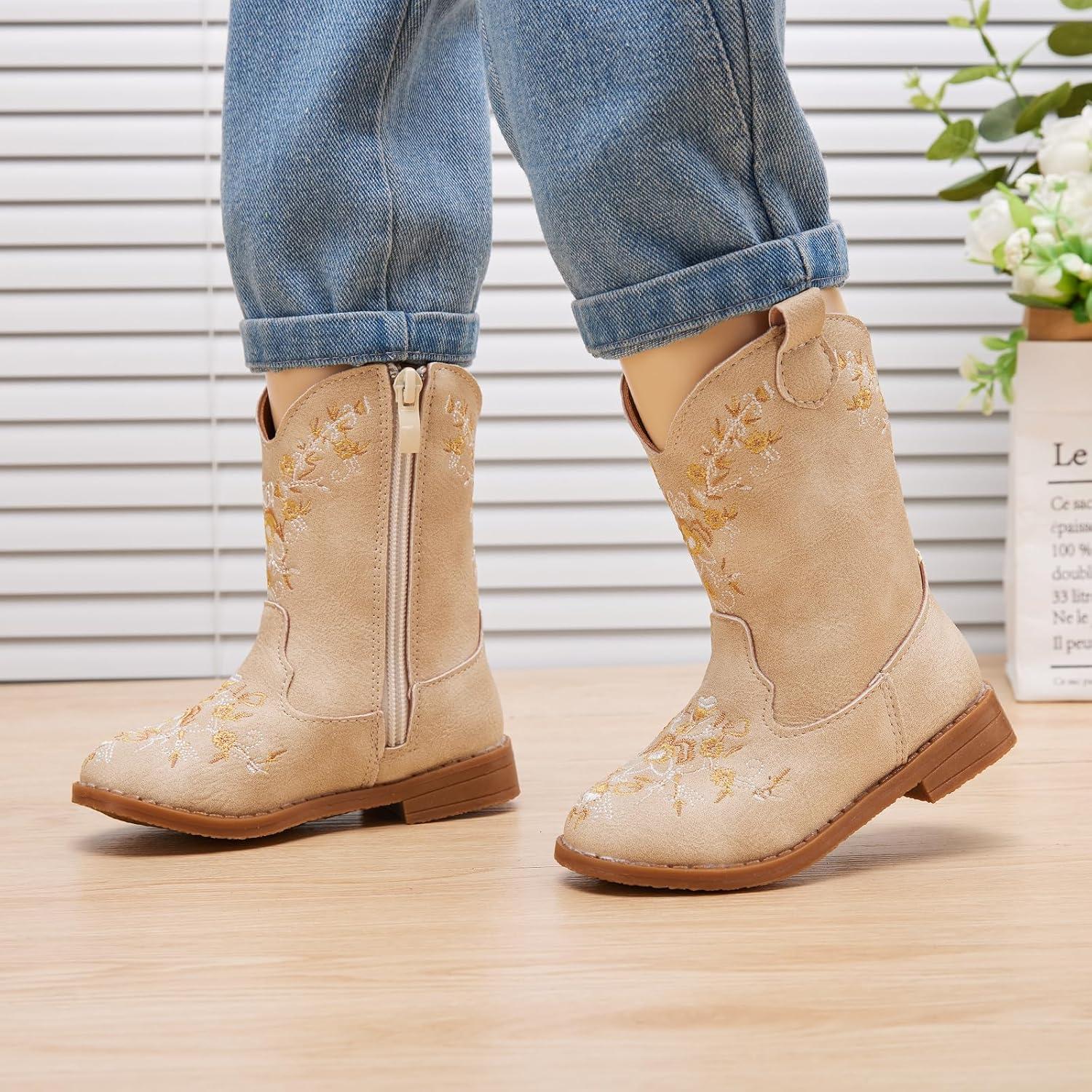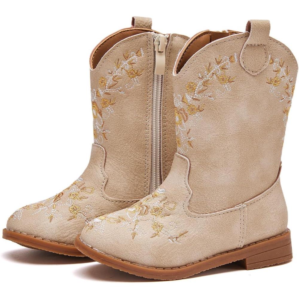 BMCiTYBM Toddler Girls Cowboy Cowgirl Boots Little Kids Pointed Toe Western Boots Mid Calf Side Zipper Riding Shoes for All Seasons (Toddler/Little Kid)(F-beige)