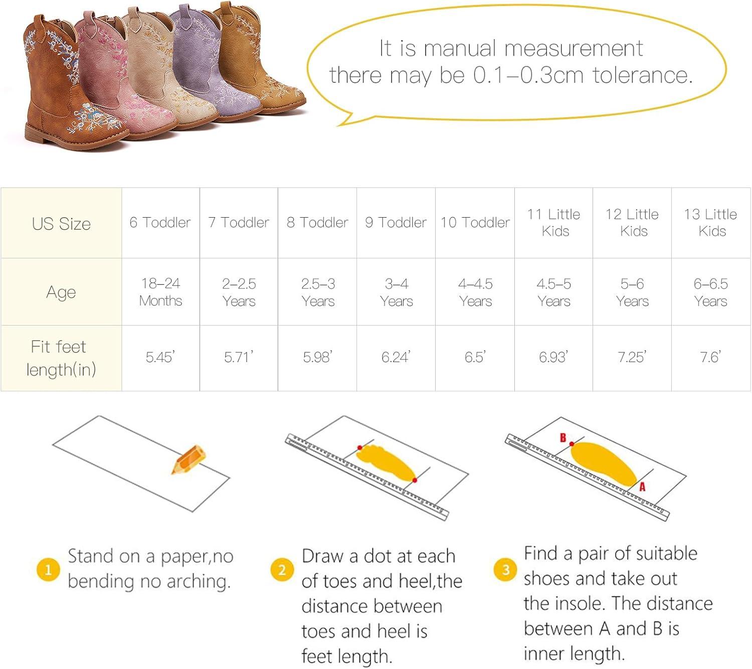 BMCiTYBM Toddler Girls Cowboy Cowgirl Boots Little Kids Pointed Toe Western Boots Mid Calf Side Zipper Riding Shoes for All Seasons (Toddler/Little Kid)(F-camel)