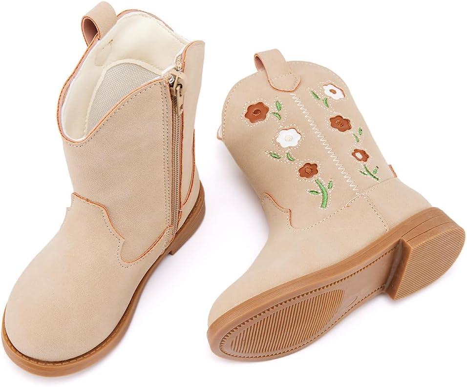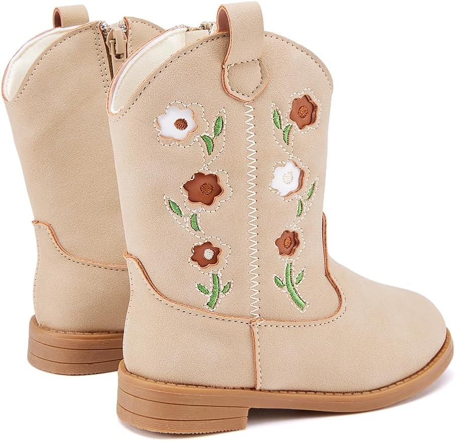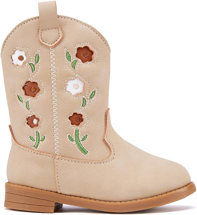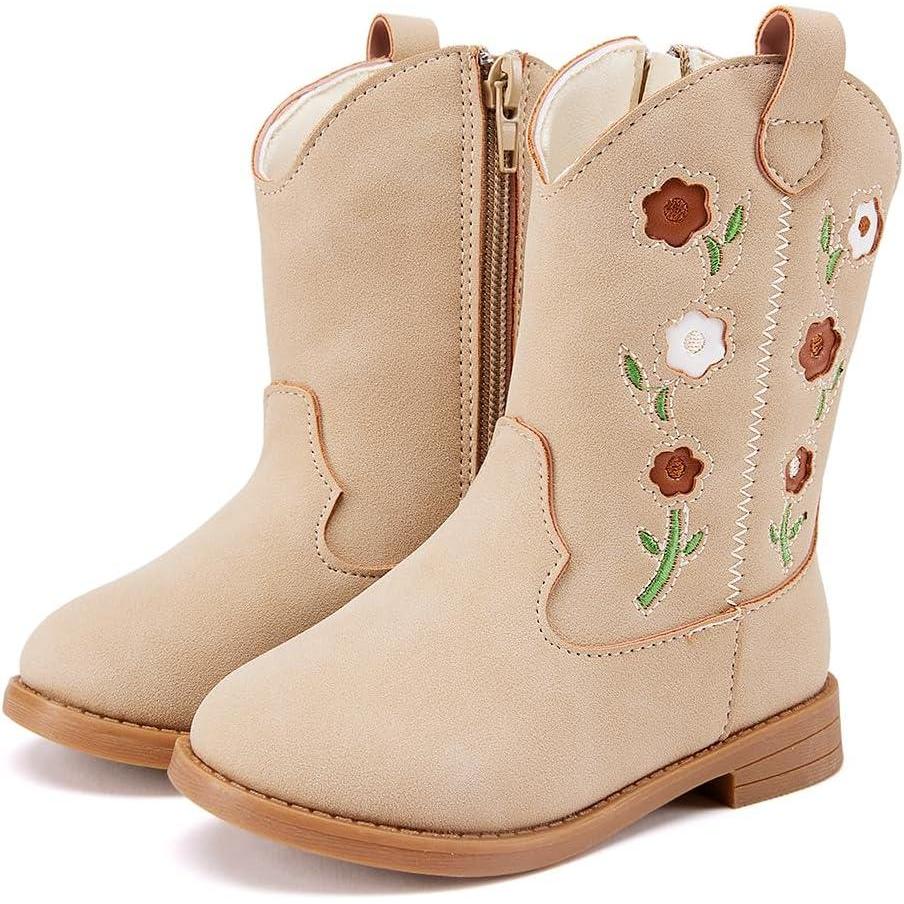 BMCiTYBM Toddler Girls Cowgirl Boots Little Kids Mid Calf Western Boots Flower Cowboy Boots Pointed Toe Riding Shoes(1-camel)