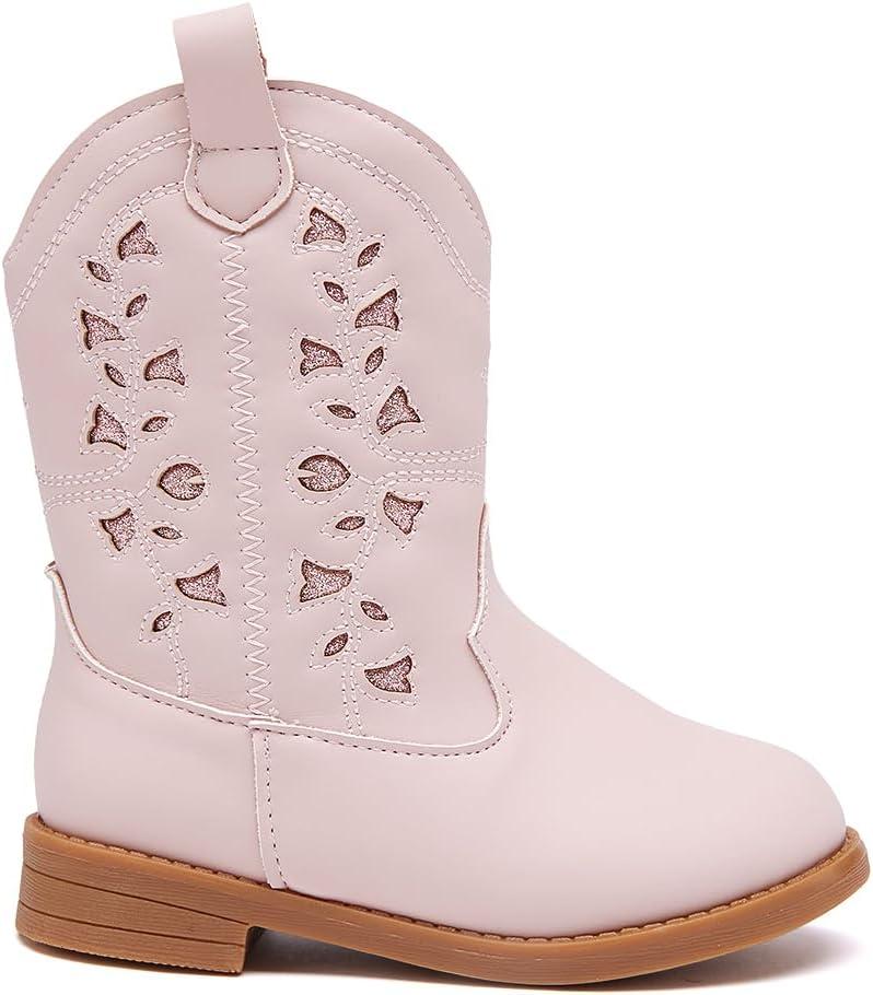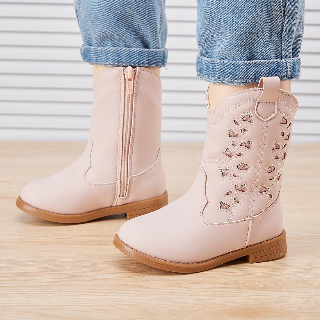 imageBMCiTYBM Toddler Girls Cowgirl Boots Little Kids Mid Calf Western Boots Flower Cowboy Boots Pointed Toe Riding Shoes2pink