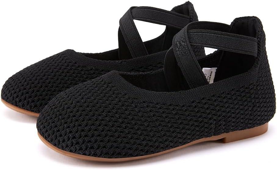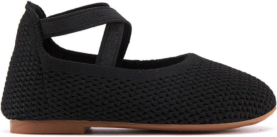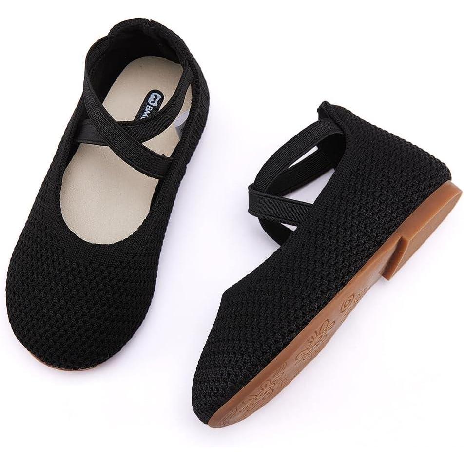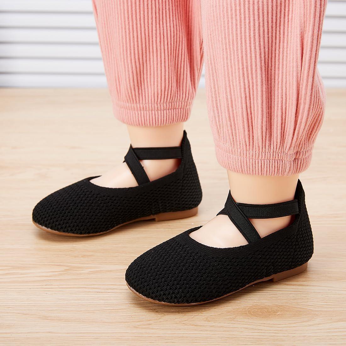 BMCiTYBM Toddler Girls Dress Walking Shoes Knitting Mary Jane Flats Ballet Party(2-black)