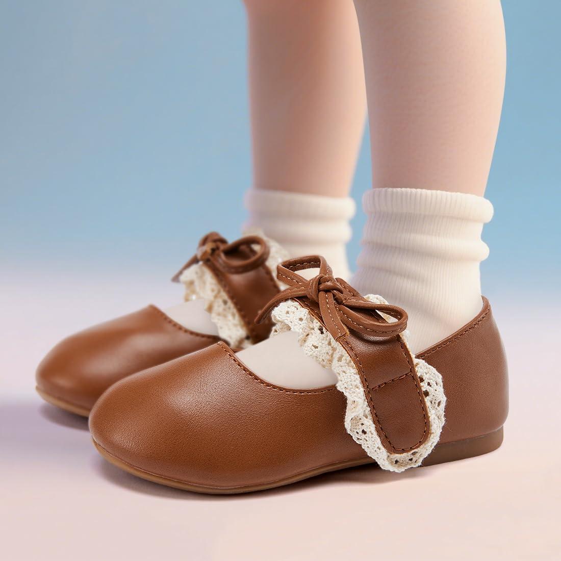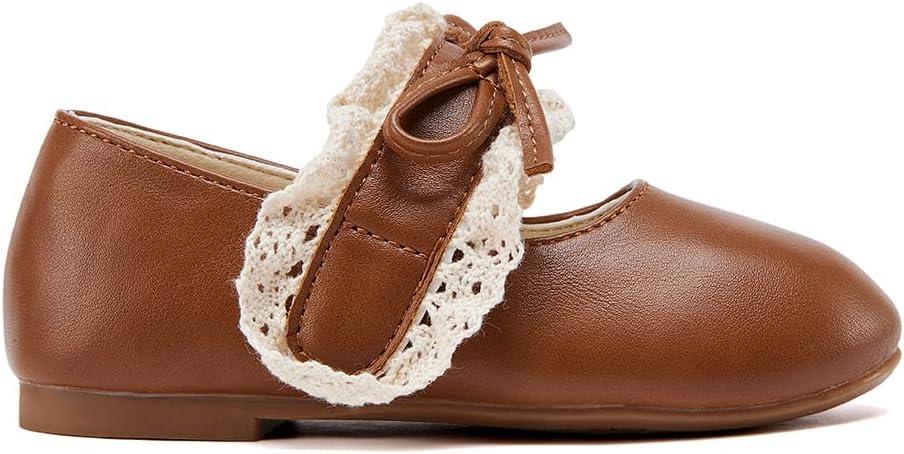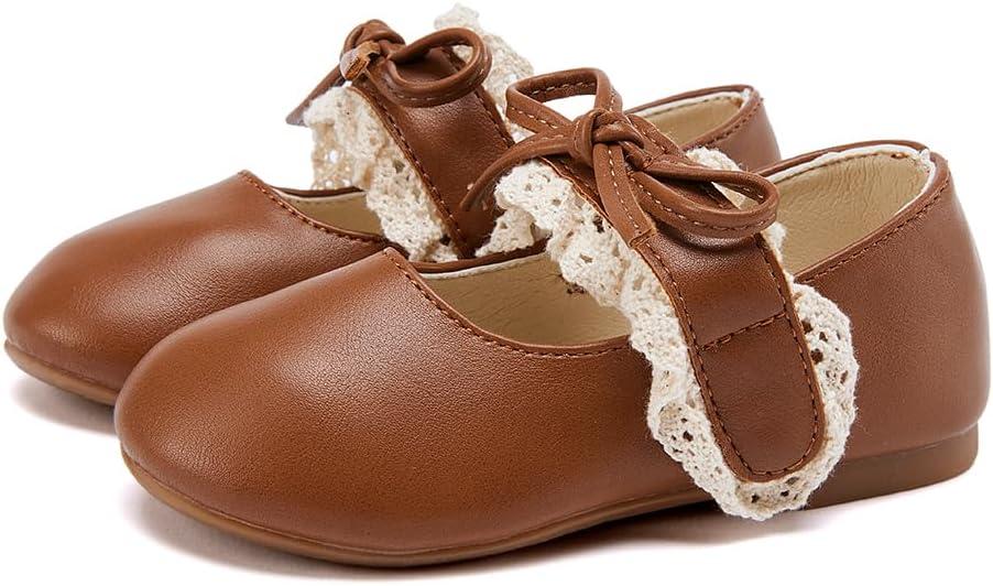BMCiTYBM Toddler Girls Dress Walking Shoes Knitting Mary Jane Flats Ballet Party(3-brown)