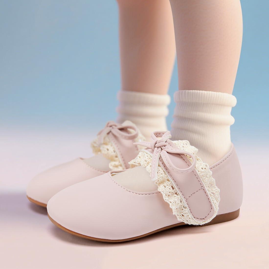 BMCiTYBM Toddler Girls Dress Walking Shoes Knitting Mary Jane Flats Ballet Party(3-pink)