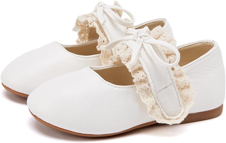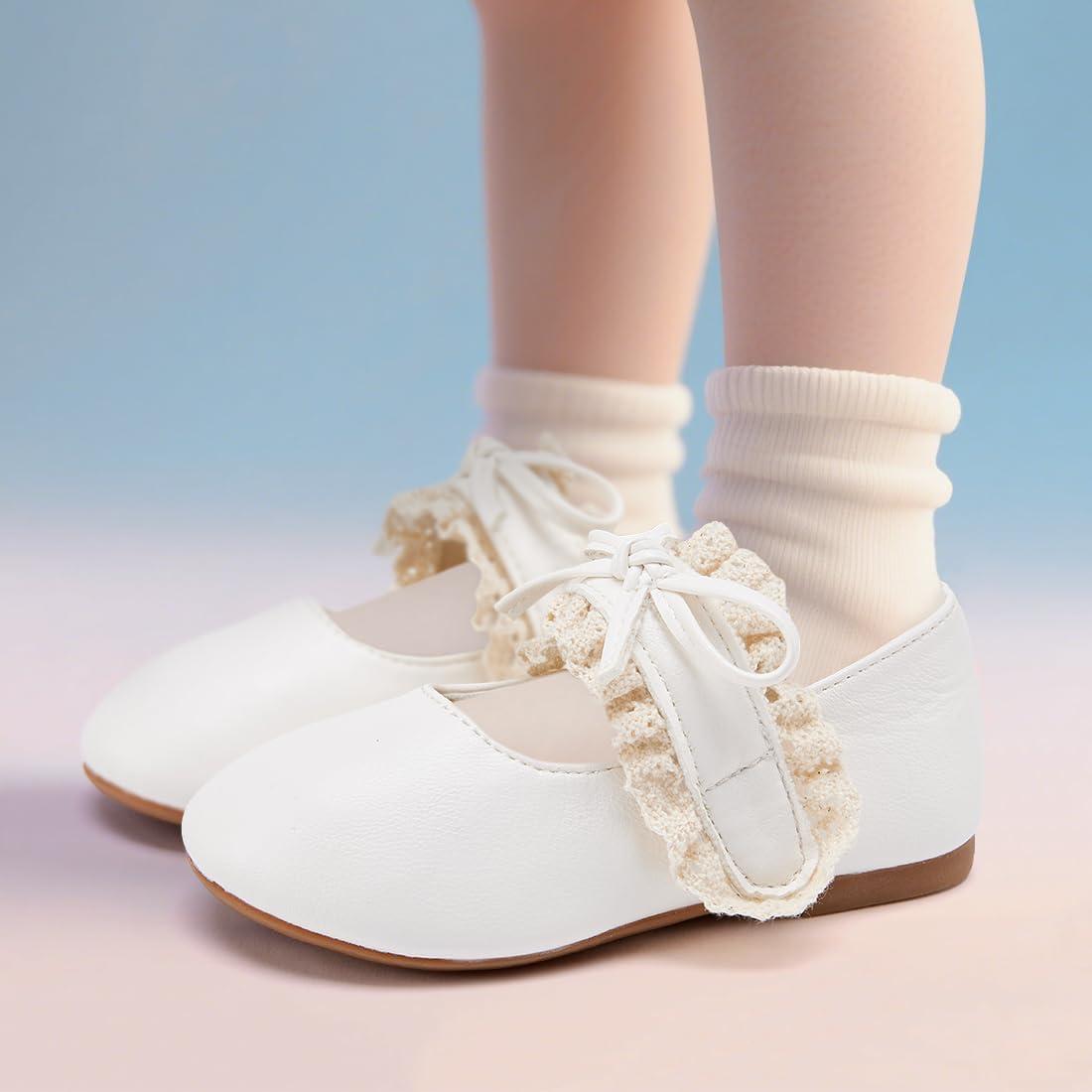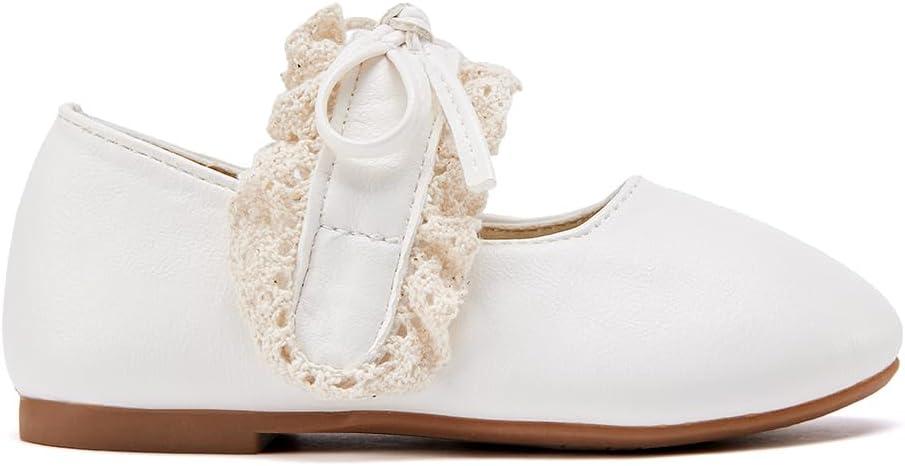 BMCiTYBM Toddler Girls Dress Walking Shoes Knitting Mary Jane Flats Ballet Party(3-white)