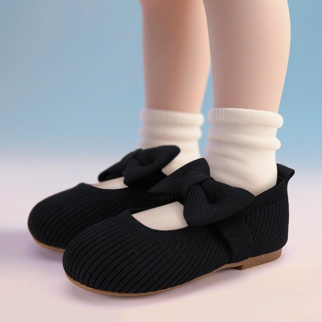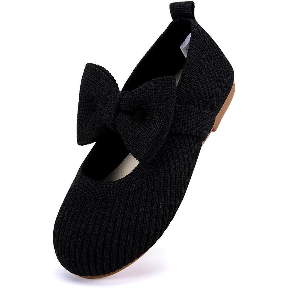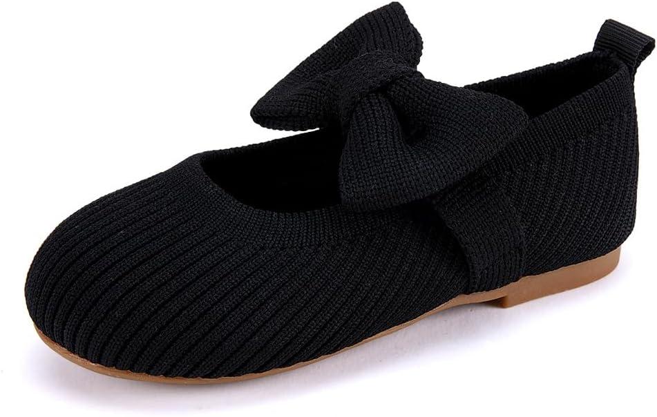 BMCiTYBM Toddler Girls Dress Walking Shoes Knitting Mary Jane Flats Ballet Party(Black)