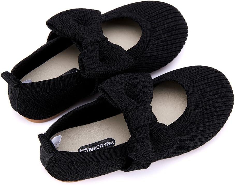 imageBMCiTYBM Toddler Girls Dress Walking Shoes Knitting Mary Jane Flats Ballet PartyBlack