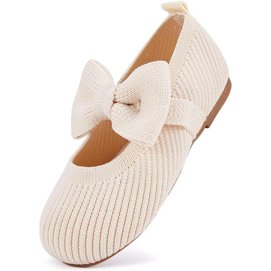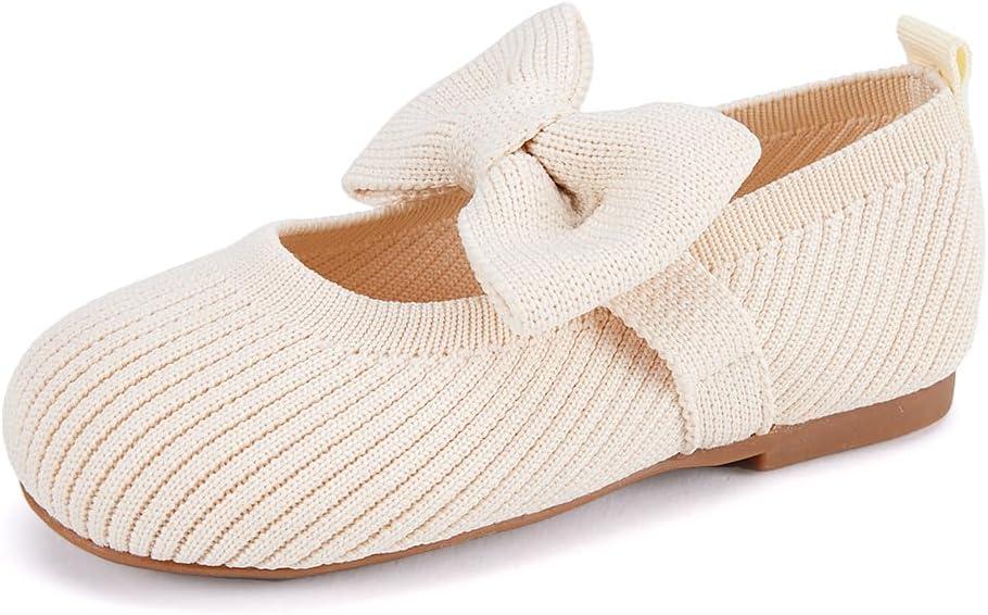 imageBMCiTYBM Toddler Girls Dress Walking Shoes Knitting Mary Jane Flats Ballet PartyCamel