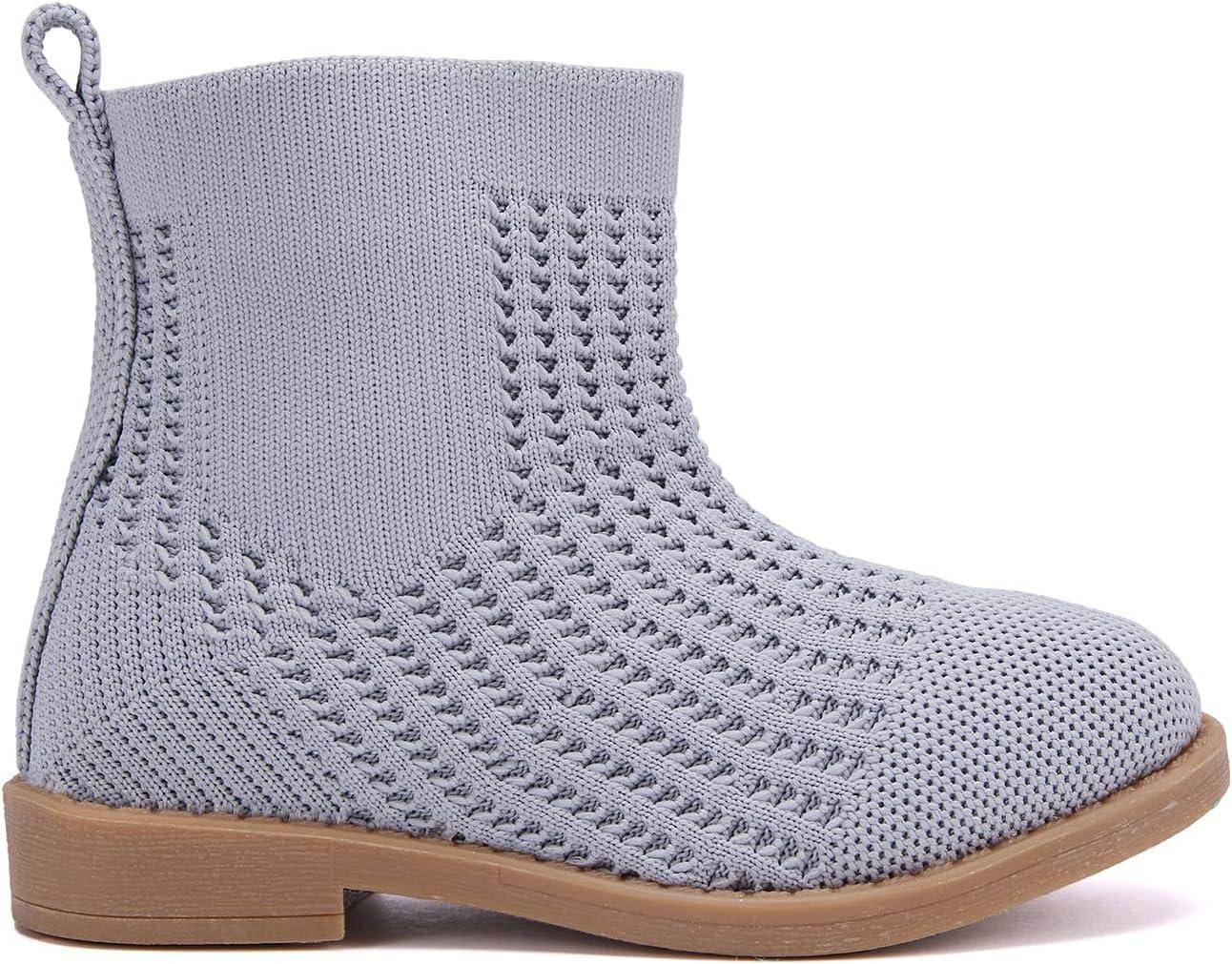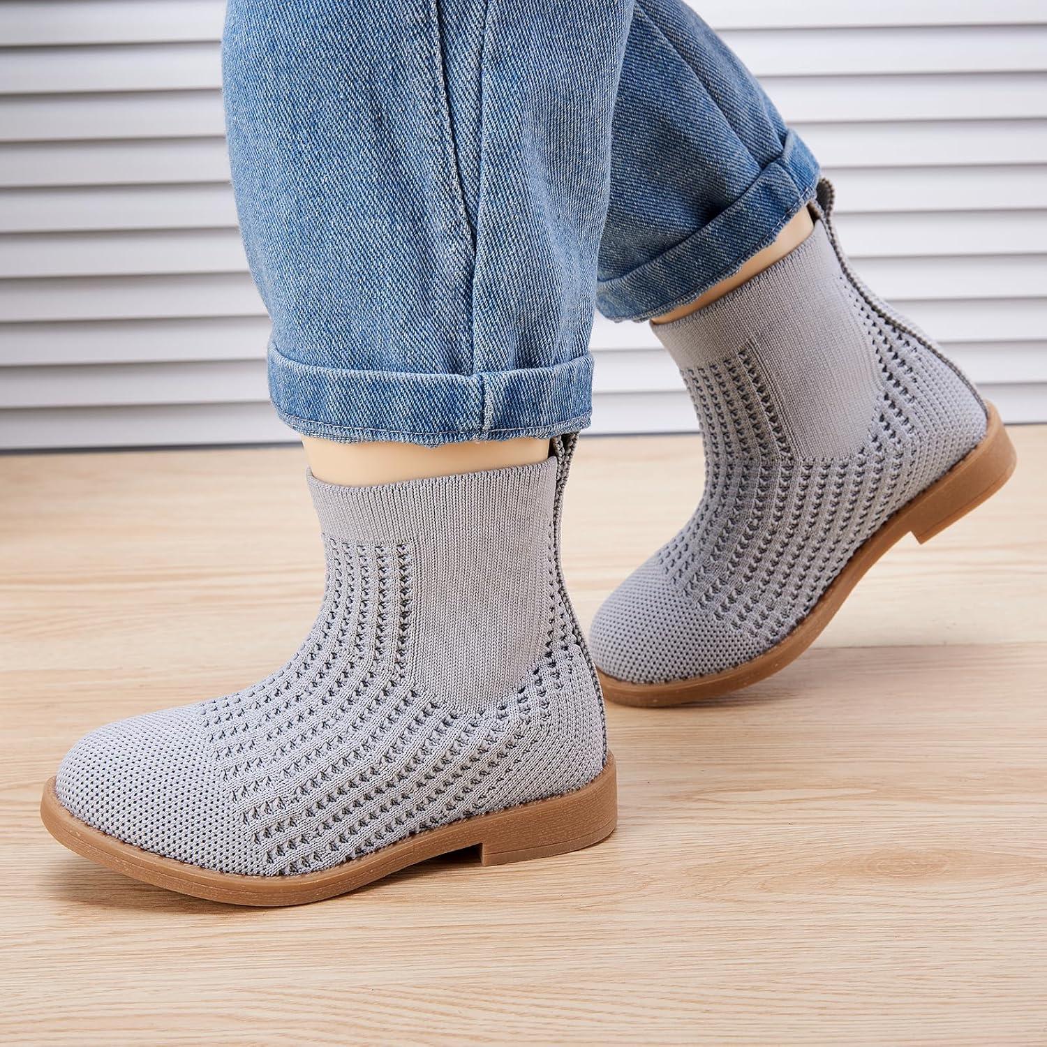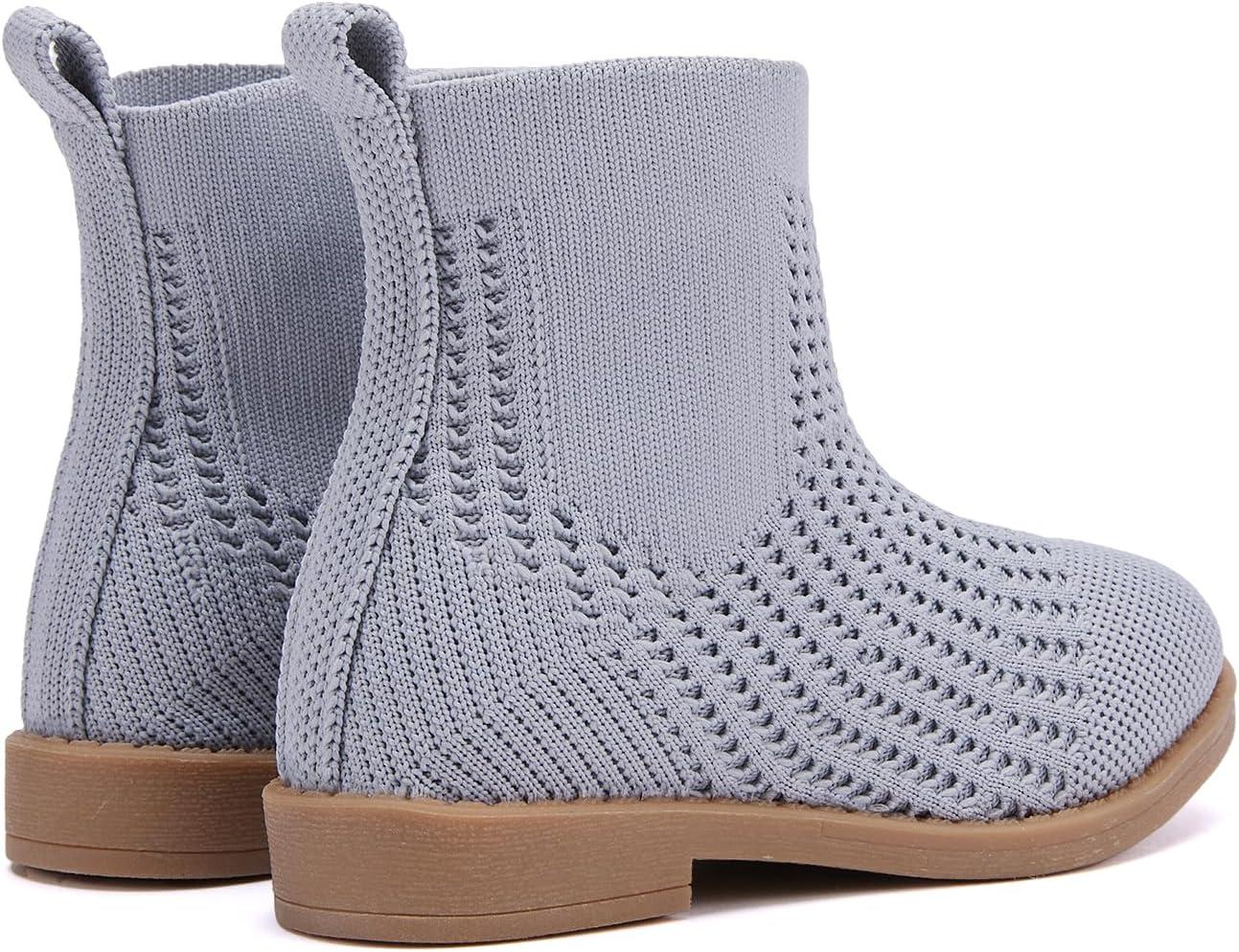 BMCiTYBM Toddler Girls Knitted Boots Breathable Low Heel Booties Pointed Toe Slip On Sock Shoes for All Seasons(Grey)