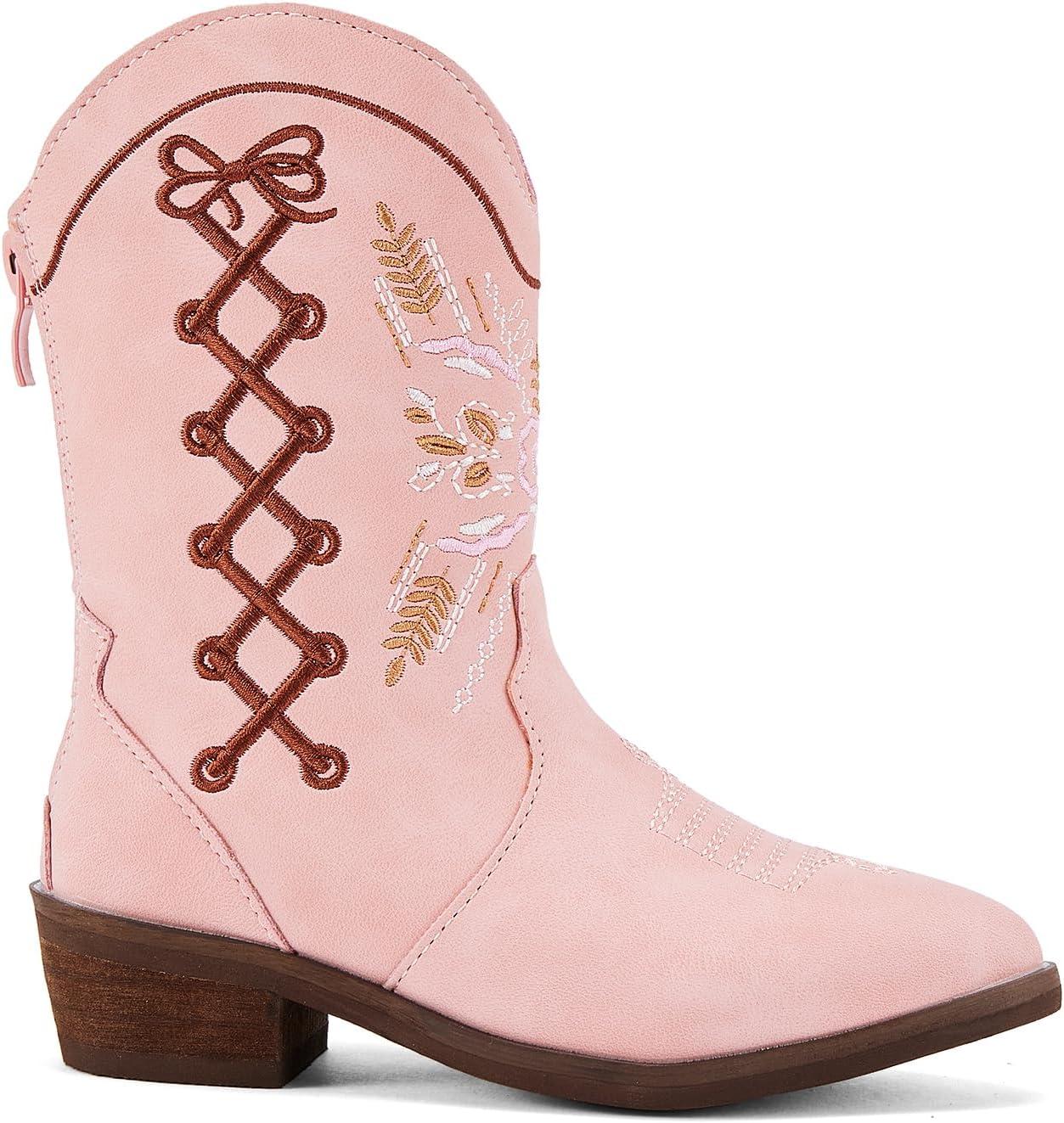 BMCiTYBM Toddler Little Girls Cowboy Cowgirl Boots Kids Pointed Toe Western Boots Mid Calf Side Zipper Riding Shoes for All Seasons (Toddler/Little Kid)(A2-pink)