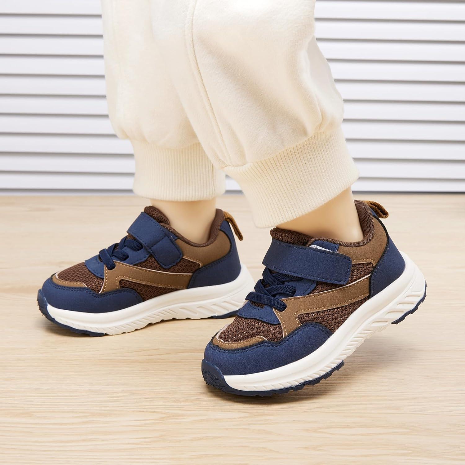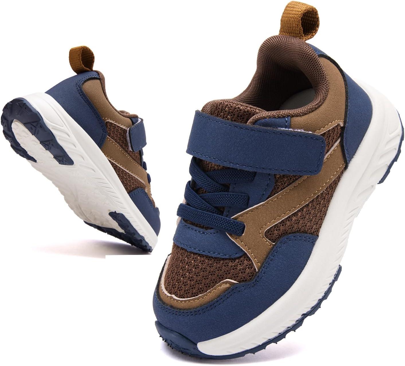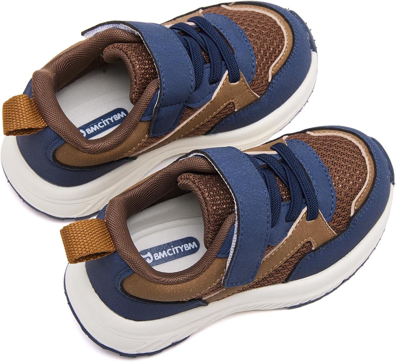 BMCiTYBM Toddler Shoes Boys Girls Walking Running Sneakers Lightweight Non Slip Tennis Sport Athletic Shoes(A1-brown Navy)