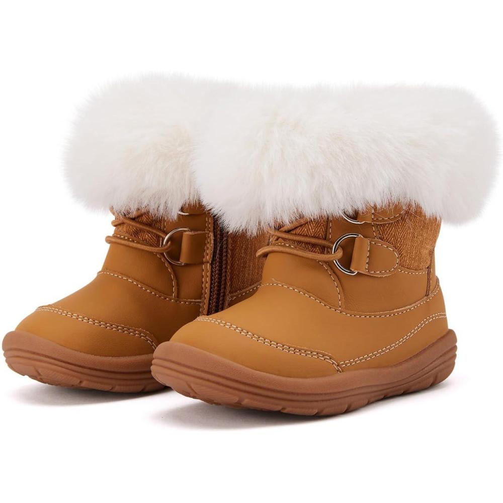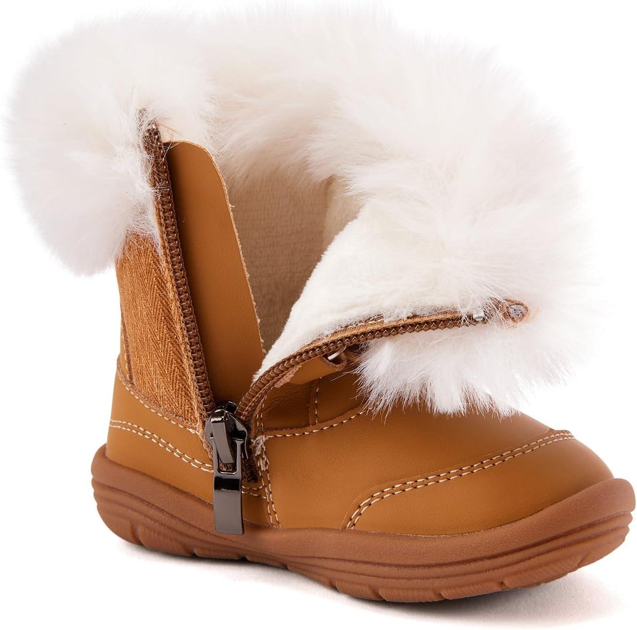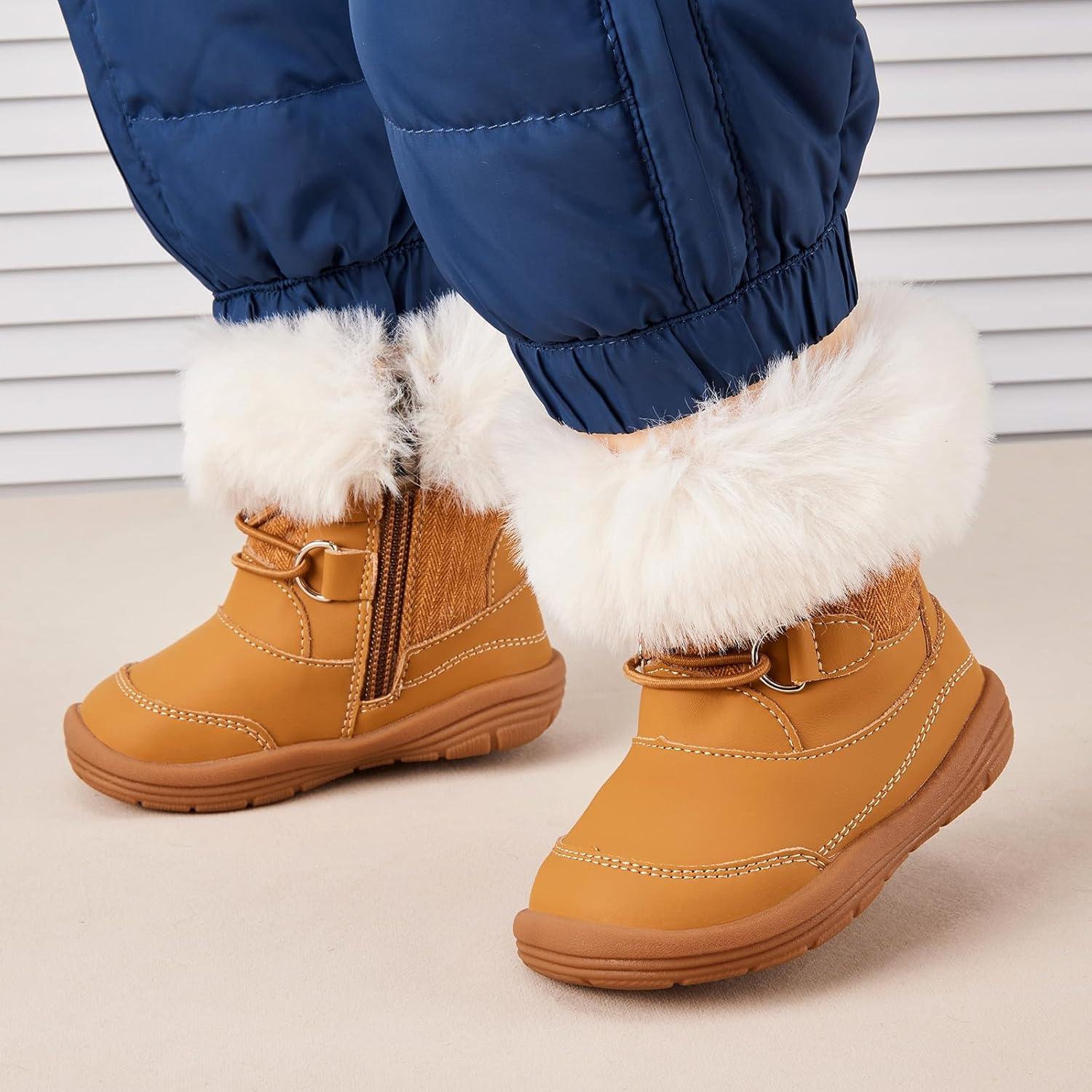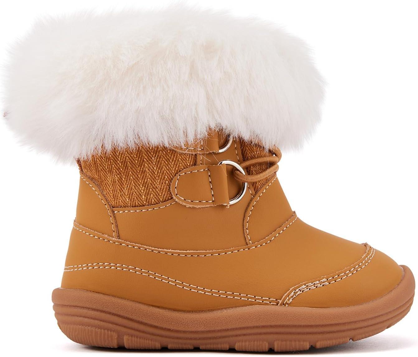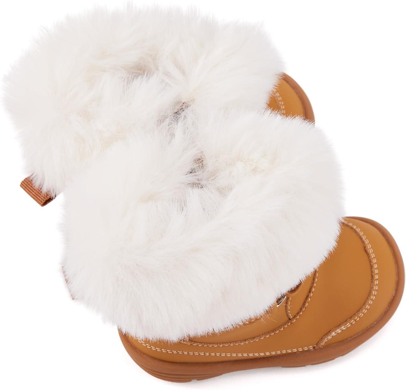 imageBMCiTYBM Toddler Snow Boots Baby Boys Girls Winter Warm Boots Infant High Top Shoes Faux Fur Bootie for Cold Weather OutdoorChevron Camel