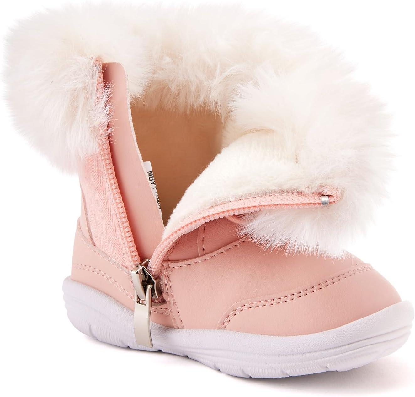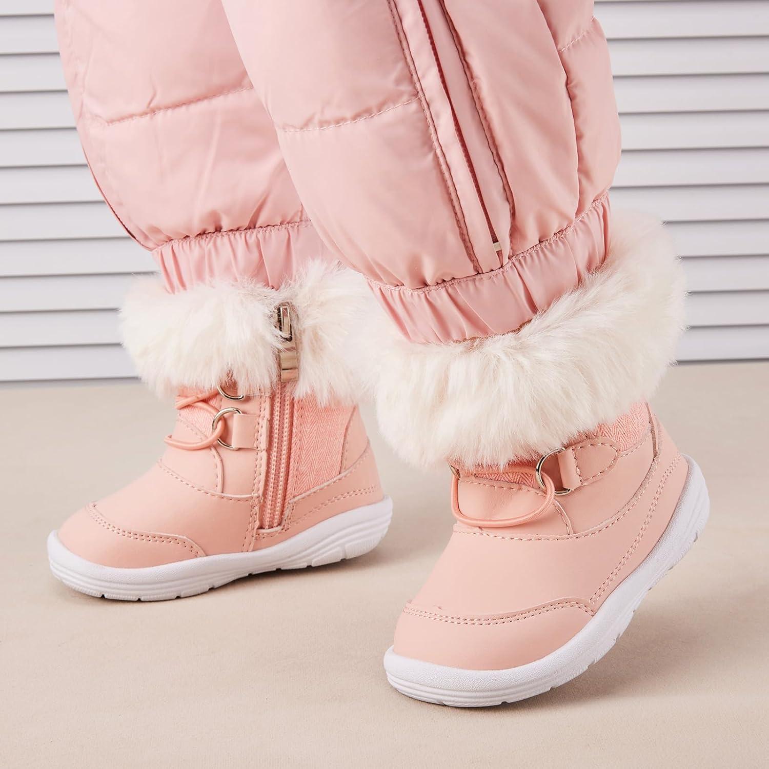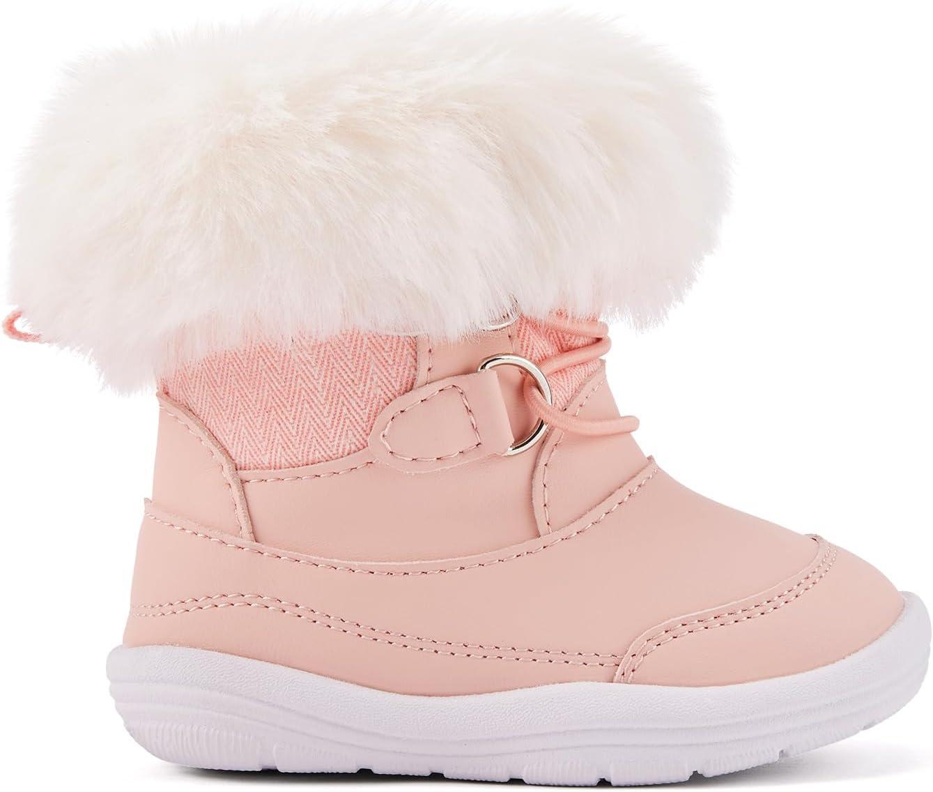 imageBMCiTYBM Toddler Snow Boots Baby Boys Girls Winter Warm Boots Infant High Top Shoes Faux Fur Bootie for Cold Weather OutdoorChevron Pink