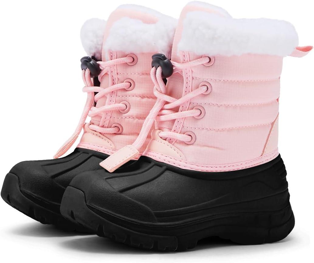 BMCiTYBM Toddler Snow Boots Boys Girls Little Kids Winter Shoes Cold Weather Outdoor Lightweight (Toddler/Little Kids)(5-pink/Black)