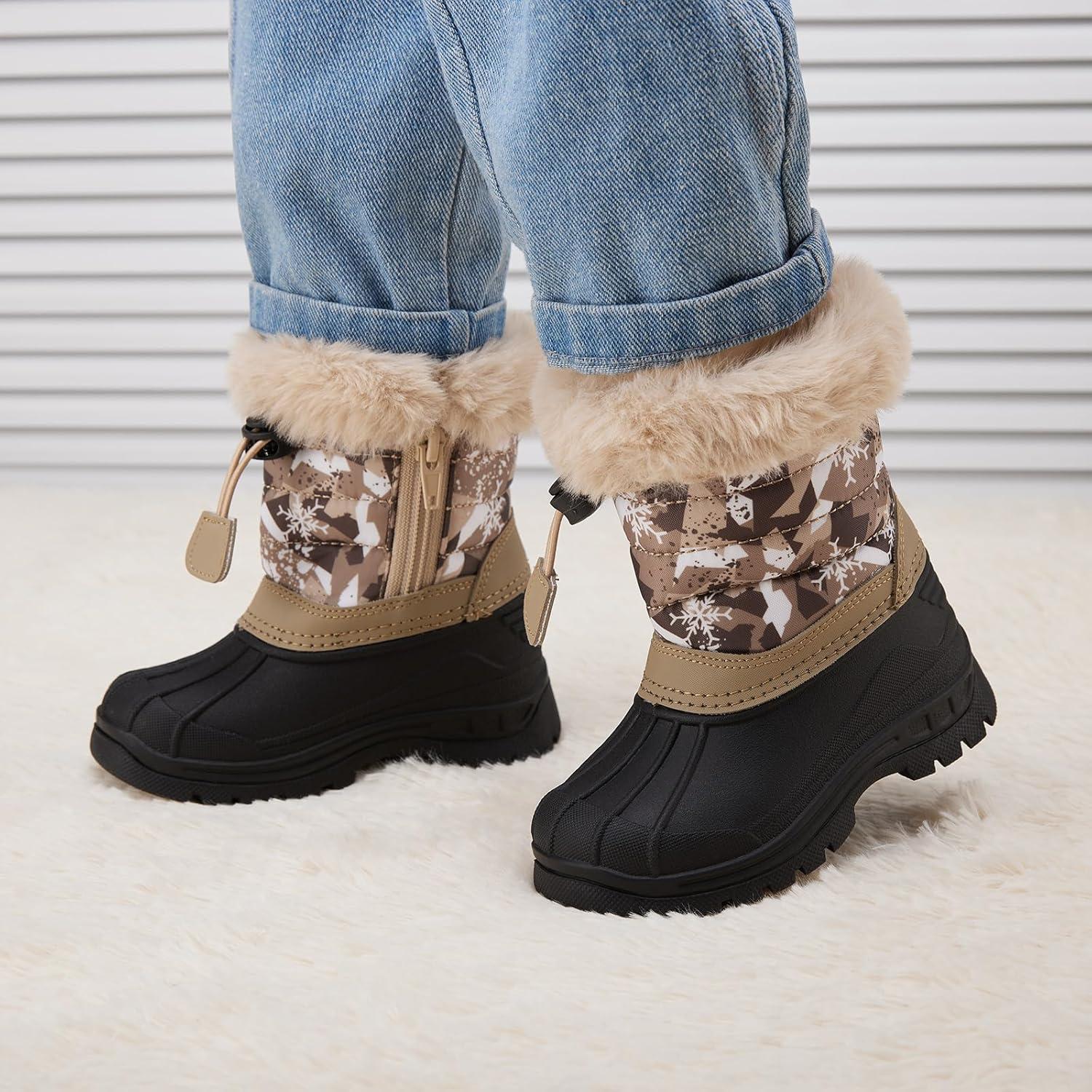 BMCiTYBM Toddler Snow Boots Boys Girls Waterproof Winter Boots High Top Outdoor Warm Shoes for Cold Weather (Toddler/Little Kid)(A-camel)