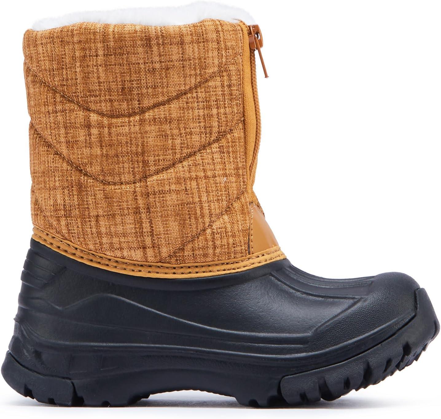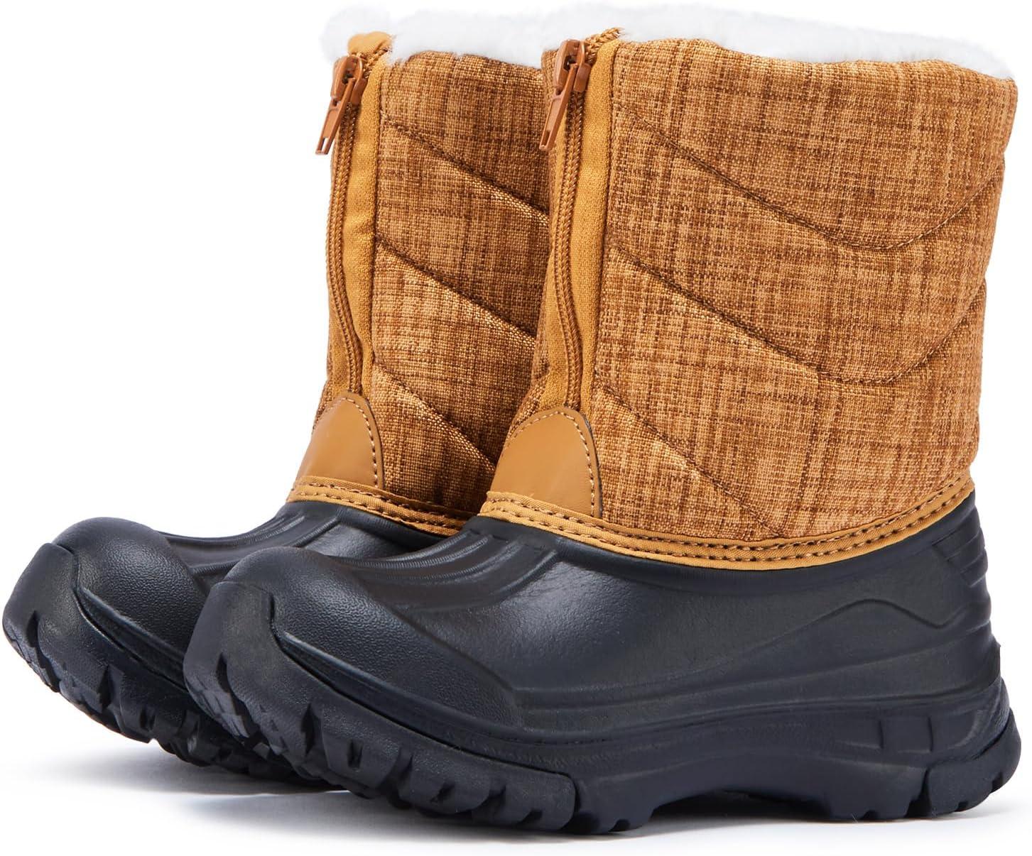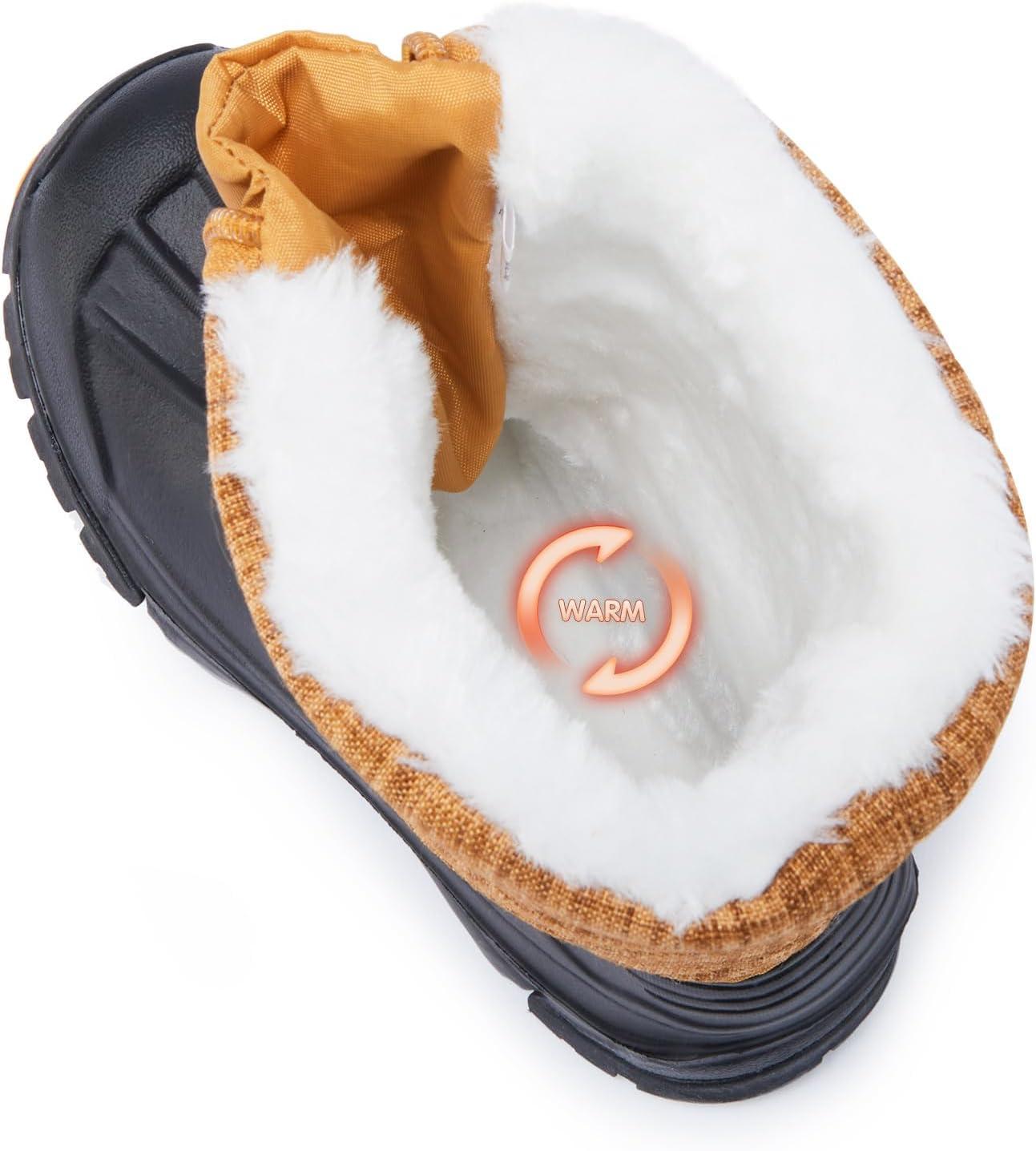 BMCiTYBM Toddler Snow Boots Boys Girls Winter Warm Shoes High Top Outdoor Sneakers for Cold Weather(A-brown)