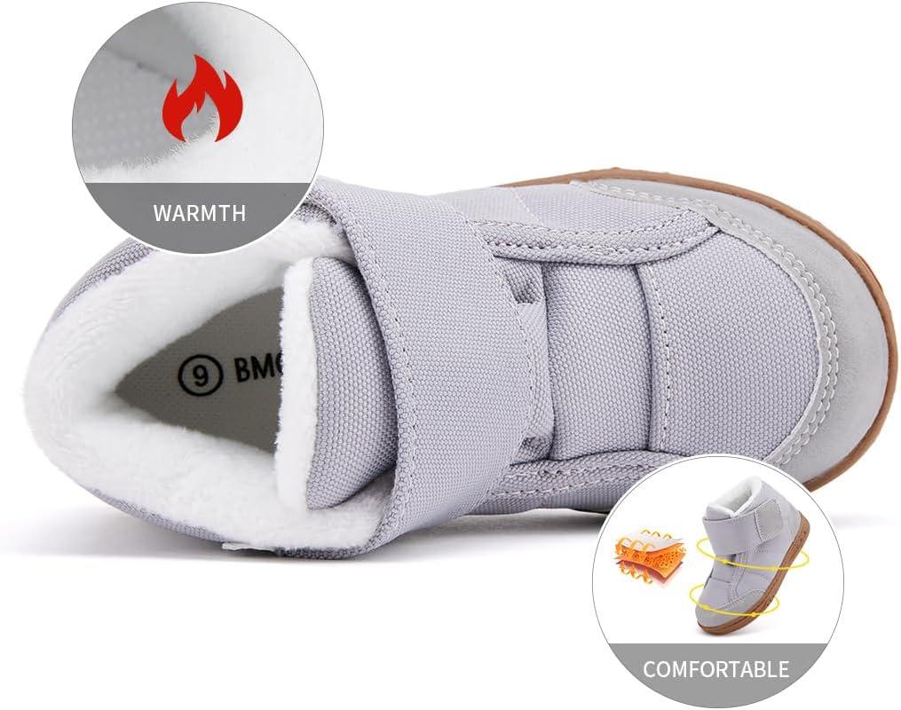 BMCiTYBM Toddler Snow Boots Boys Girls Winter Waterproof Shoes Cold Weather Outdoor(Grey)