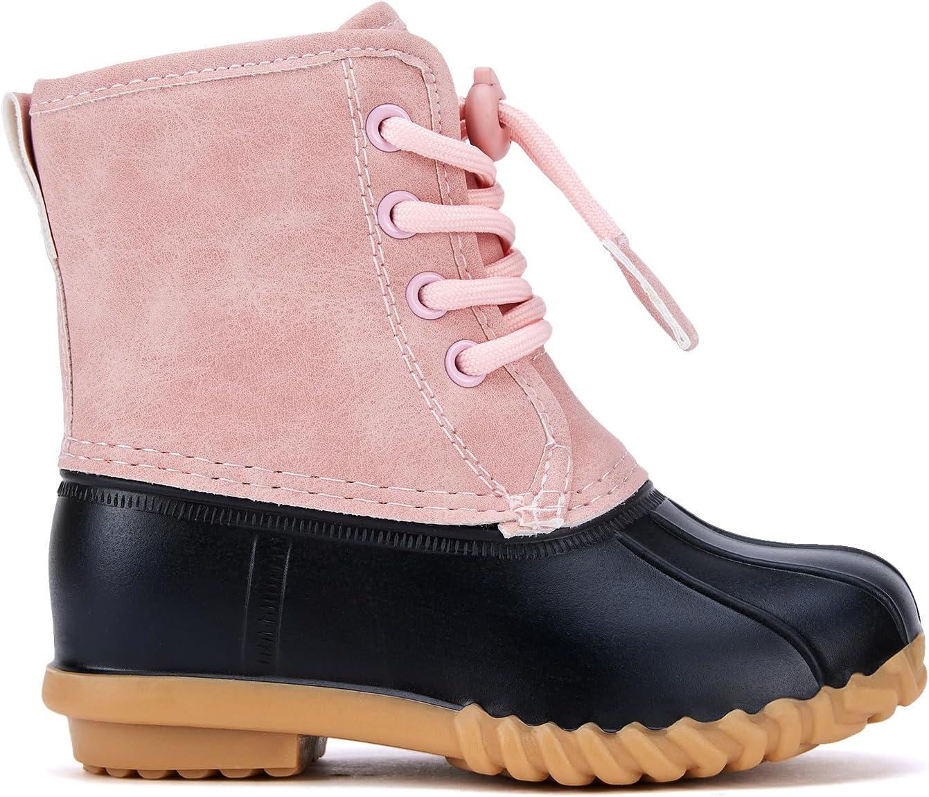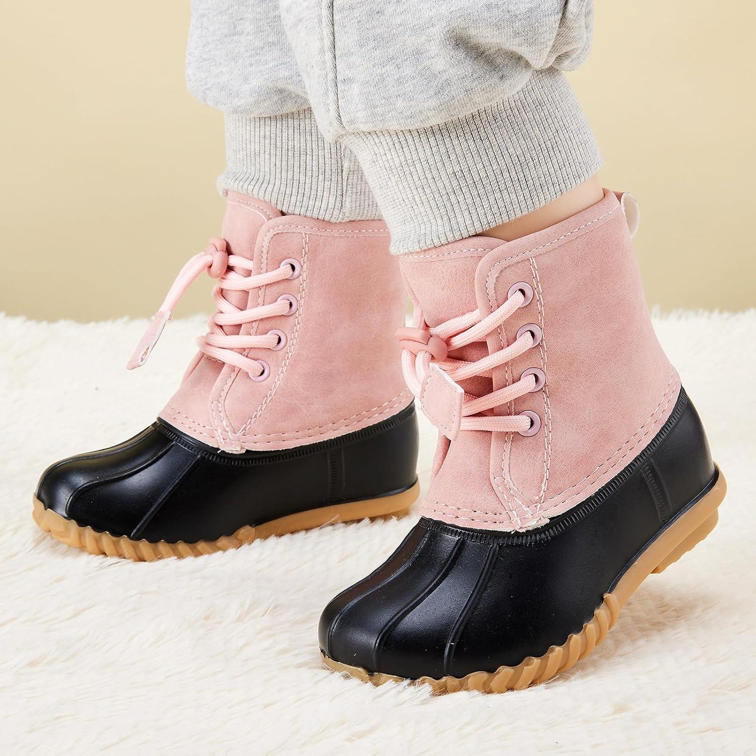 BMCiTYBM Toddler Winter Boots Waterproof Duck Snow Boots Boys Girls High Top Outdoor Warm Shoes for Cold Weather (Toddler/Little Kids)(Pink)